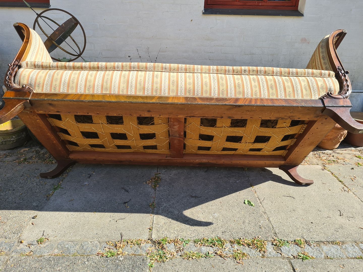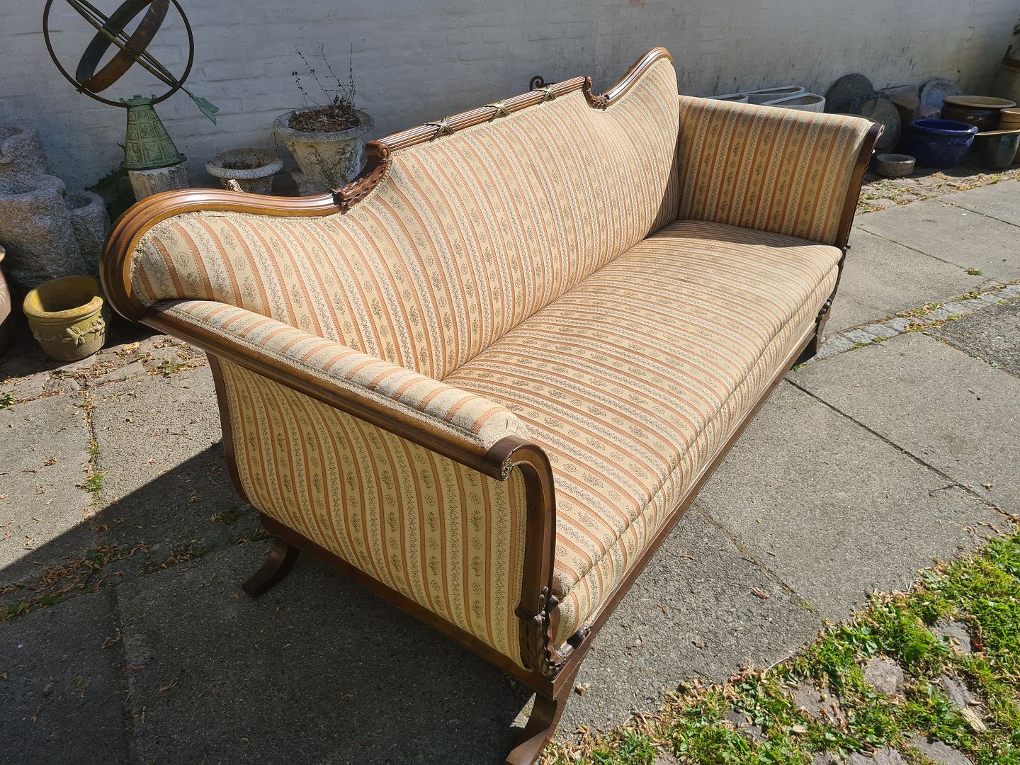 3 pers. sofa fra 1930'erne. Overpolstret på stel af nød og birk. Fremstår pæn og velholdt uden nævneværdige brugsspor. Sofaen er en del af sofasæt med nr. (80860).