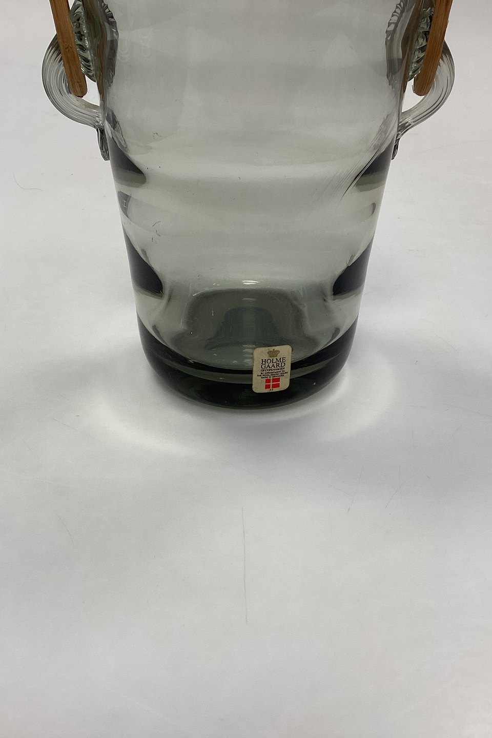 Holmegaard Akva Isspand med basthank. Farve: Grå/Smoke. Designet af Per Lütken. Lille ridse i glasset, og basten i den ene side har været løsnet.