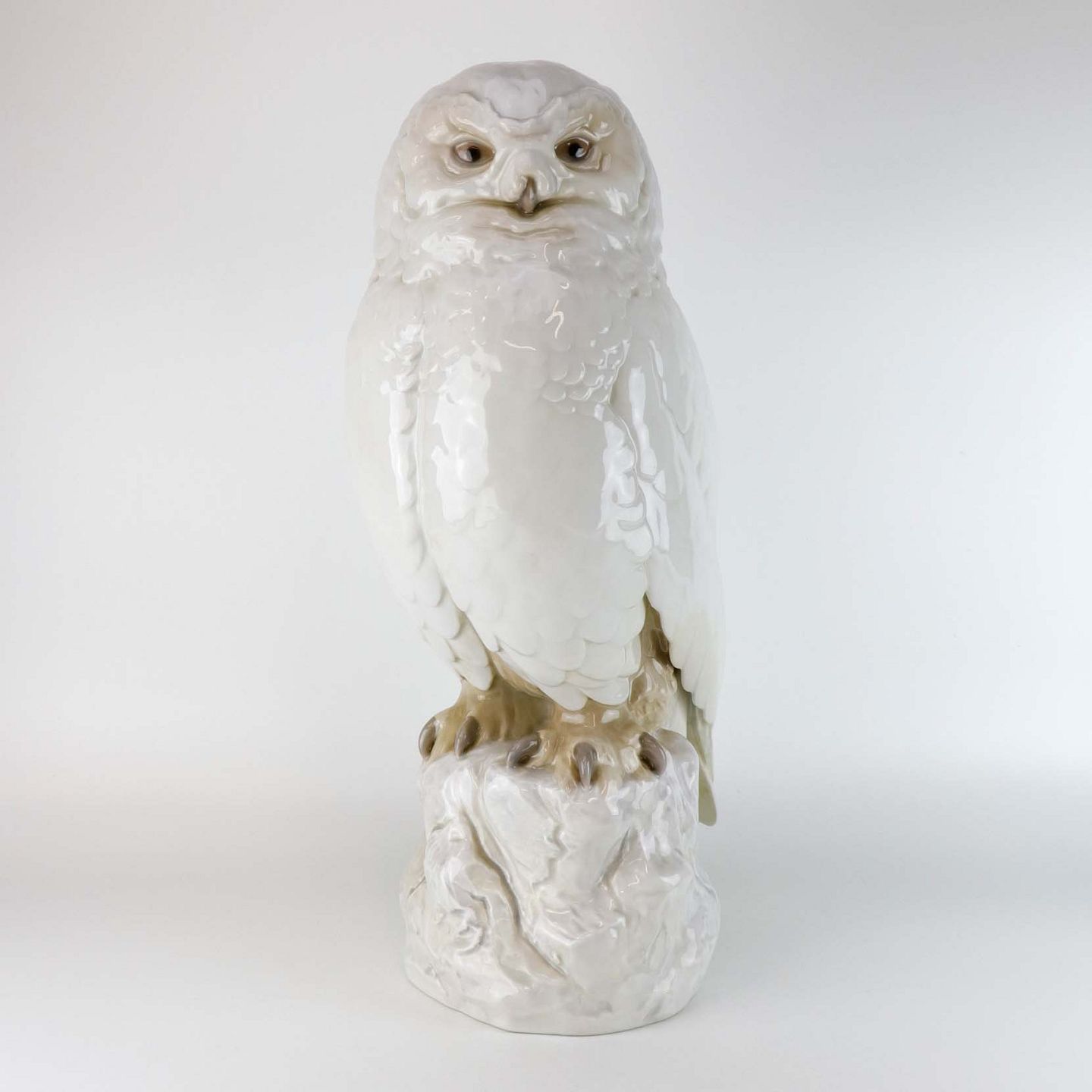 Stor figur i porcelæn med motiv af en sneugle siddende på en sten. Nr. 1500