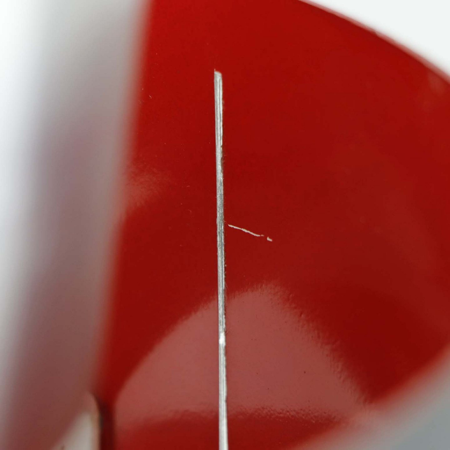 Fremstår med mindre bule mindre områder med ridser.
