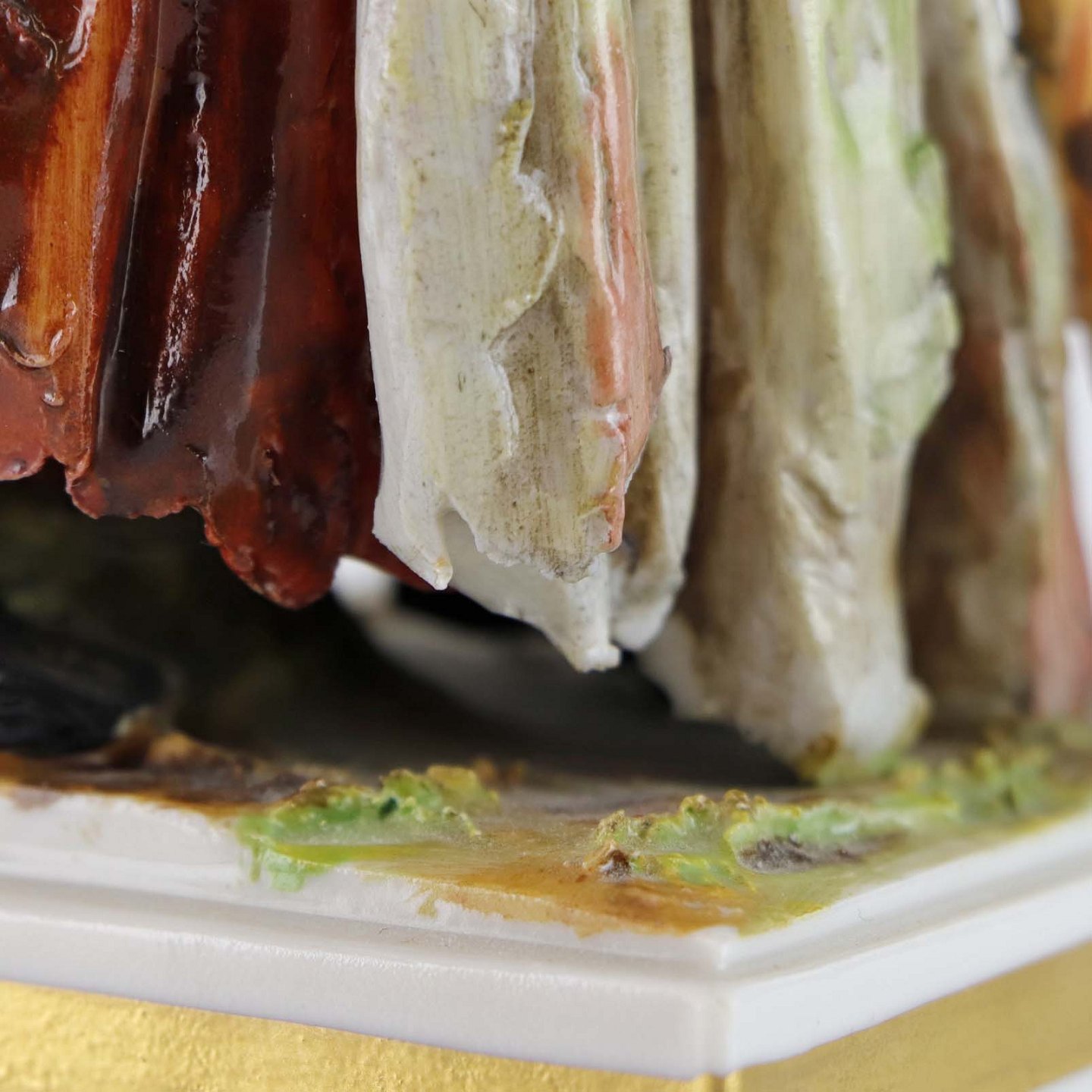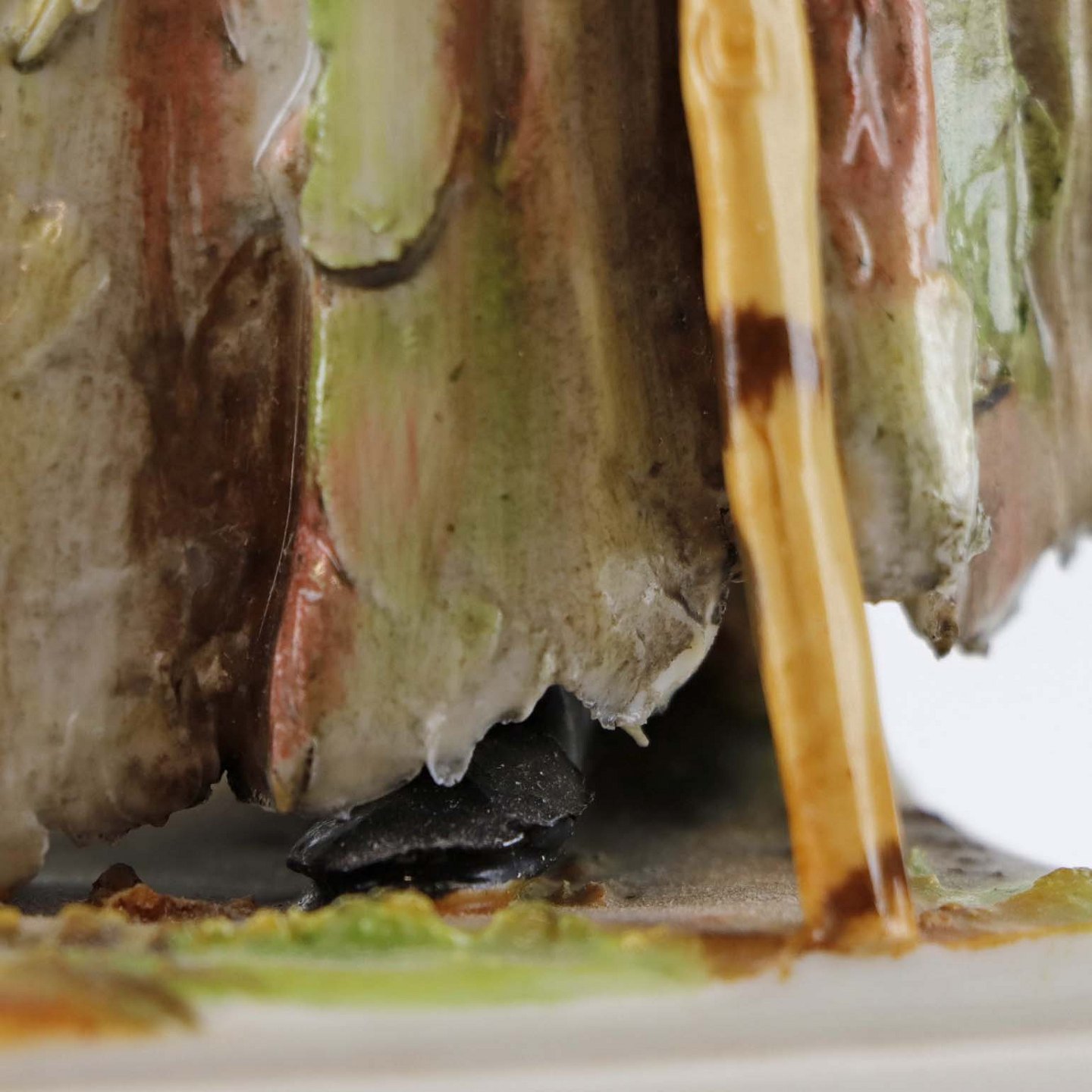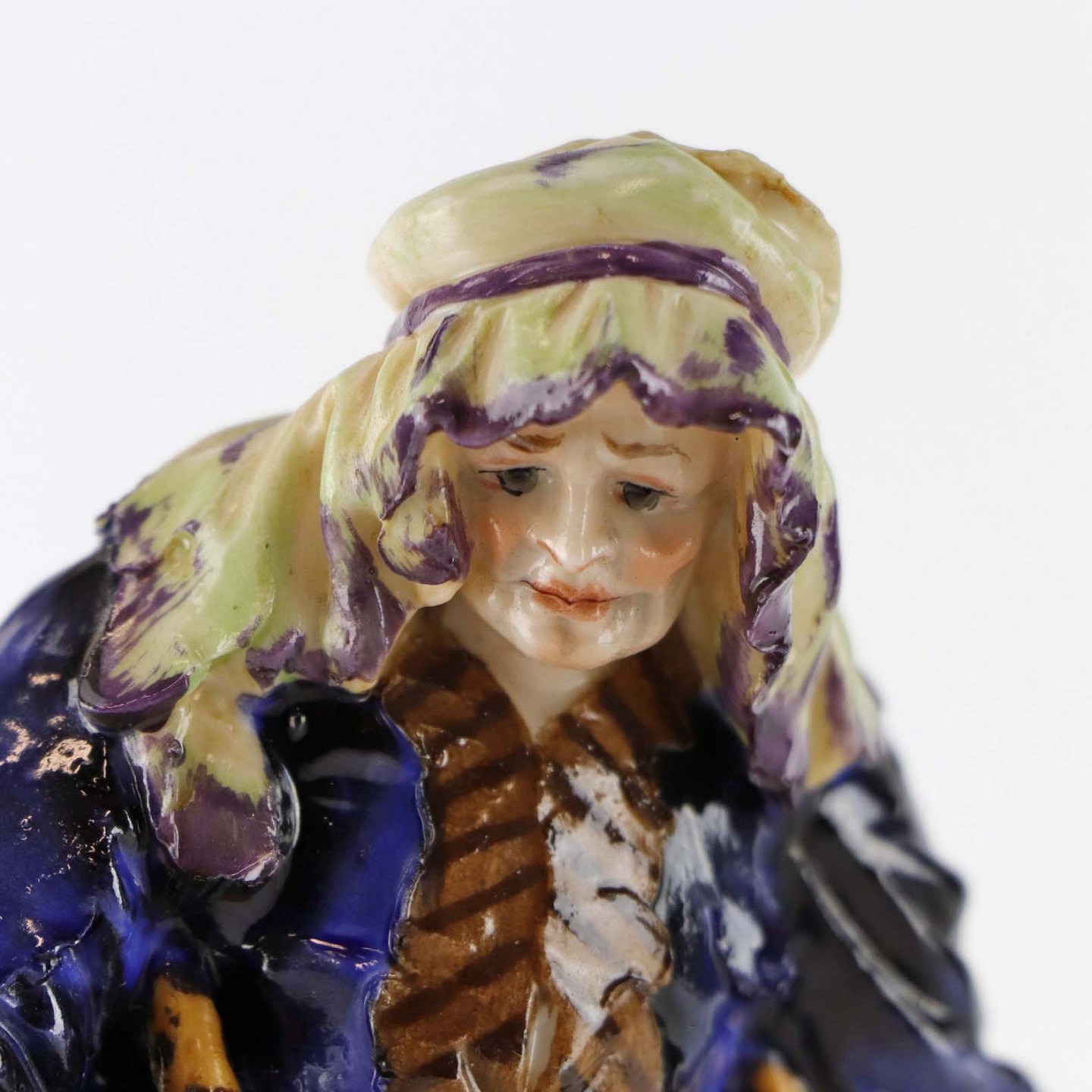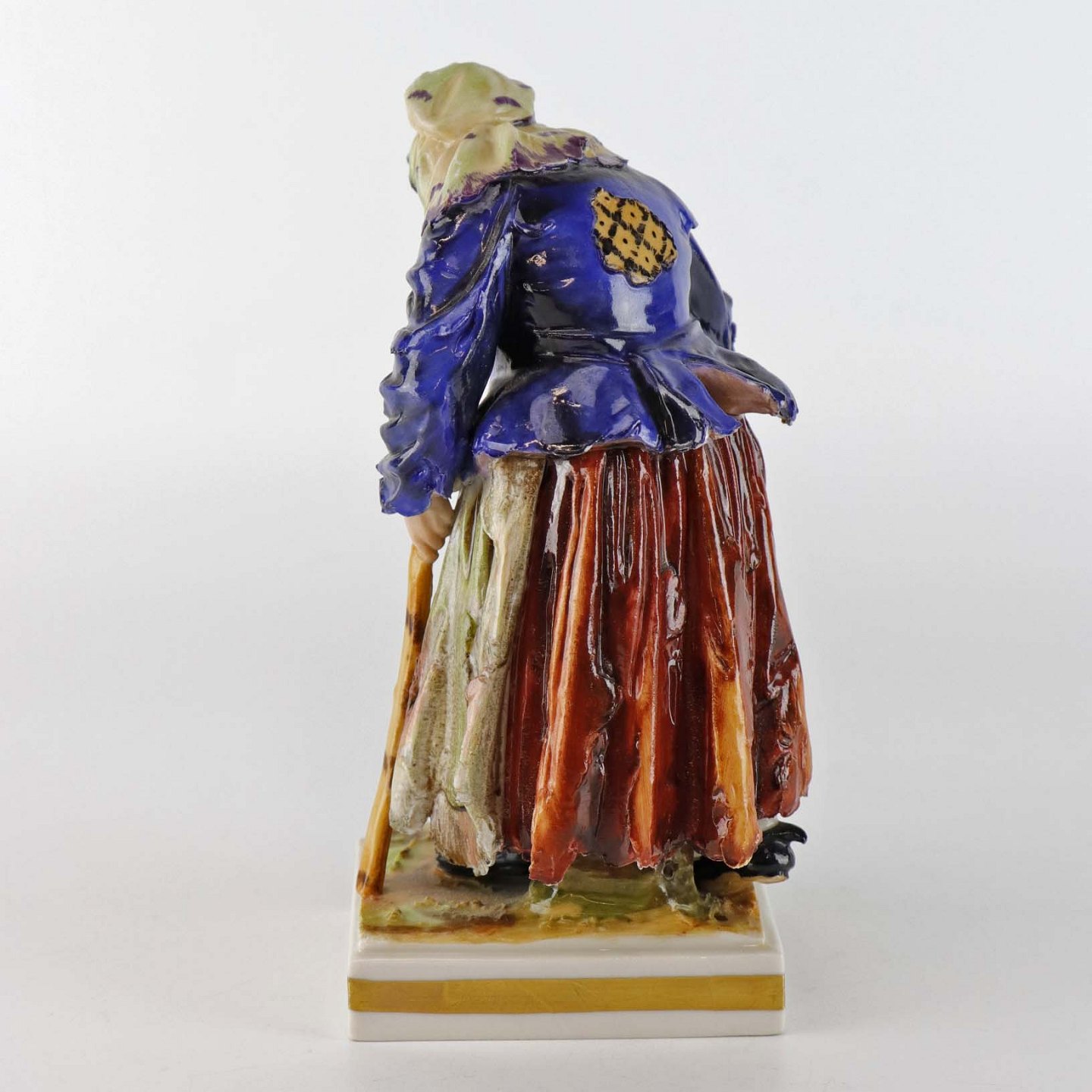 Tysk figur i porcelæn med motiv af fattig kvinde med krykker