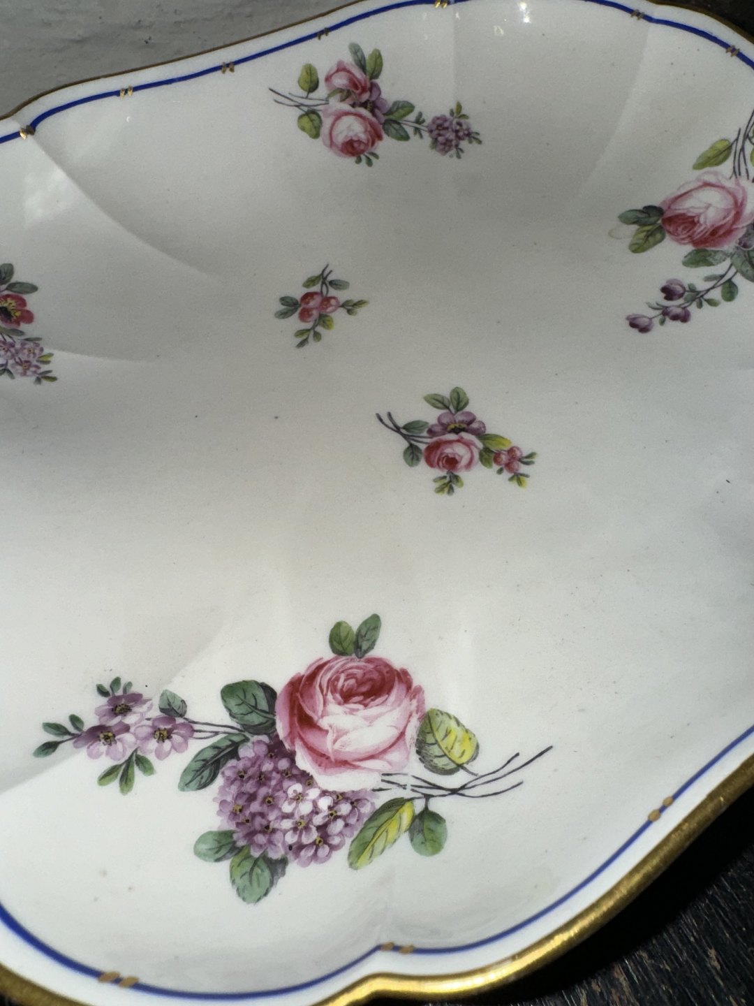 Blomsterbemalet fad i porcelæn fra Sèvres