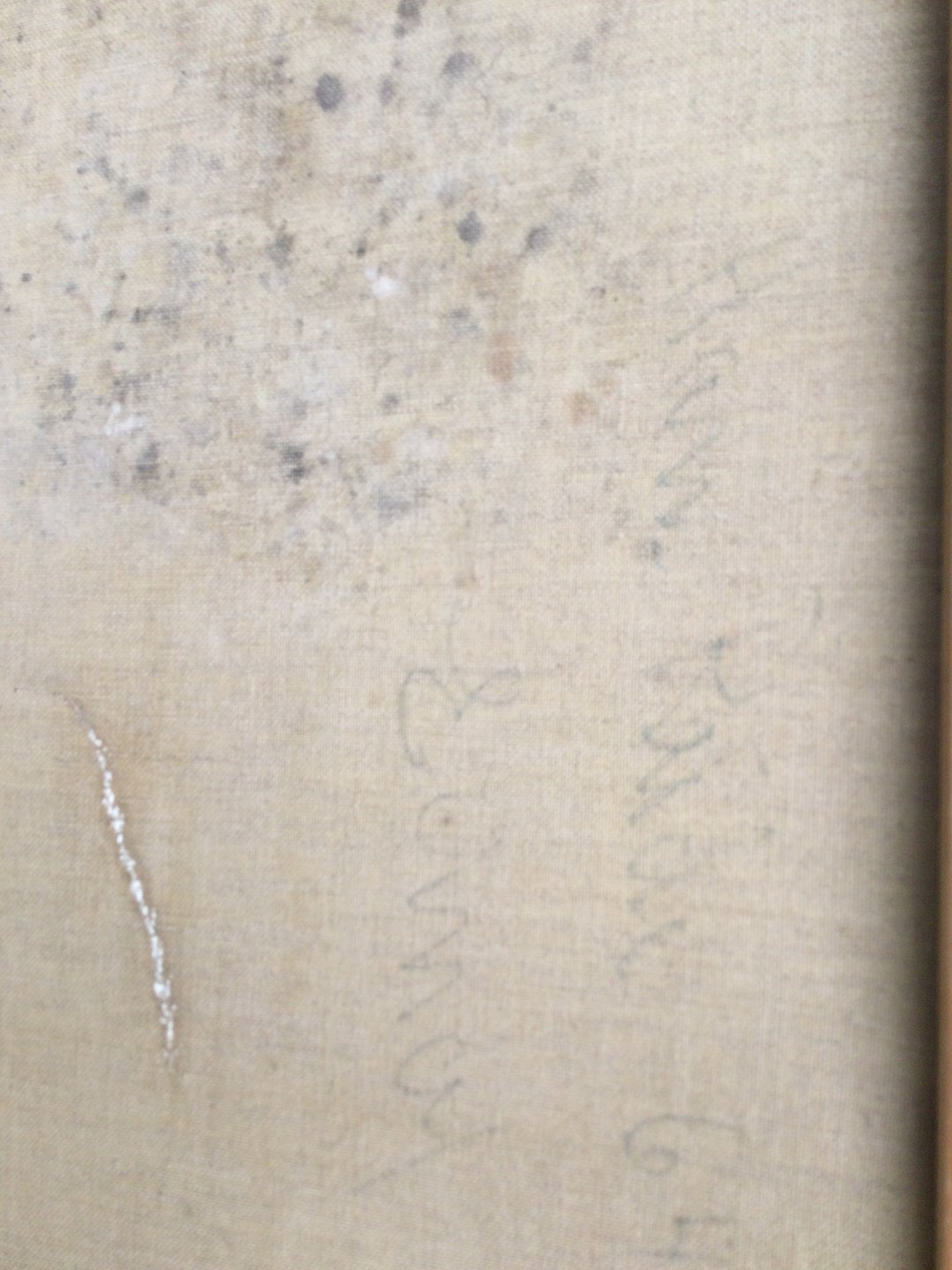 Sign.: Bagpå lærred - E. Moe 64 samt utydelig betegnelse.