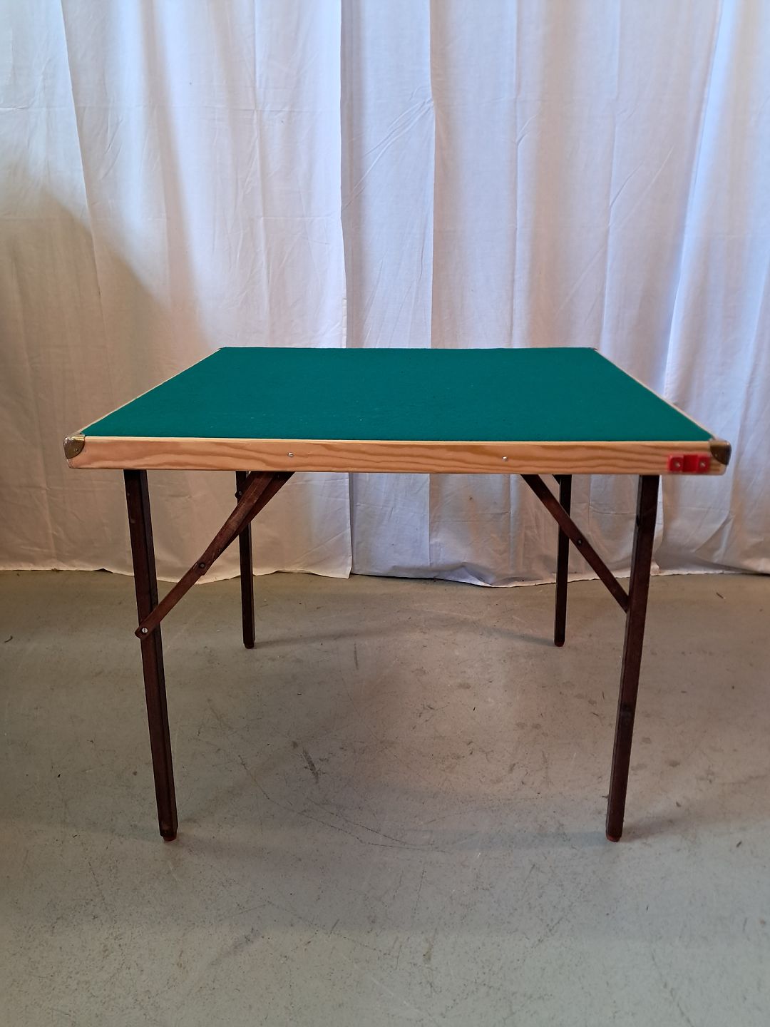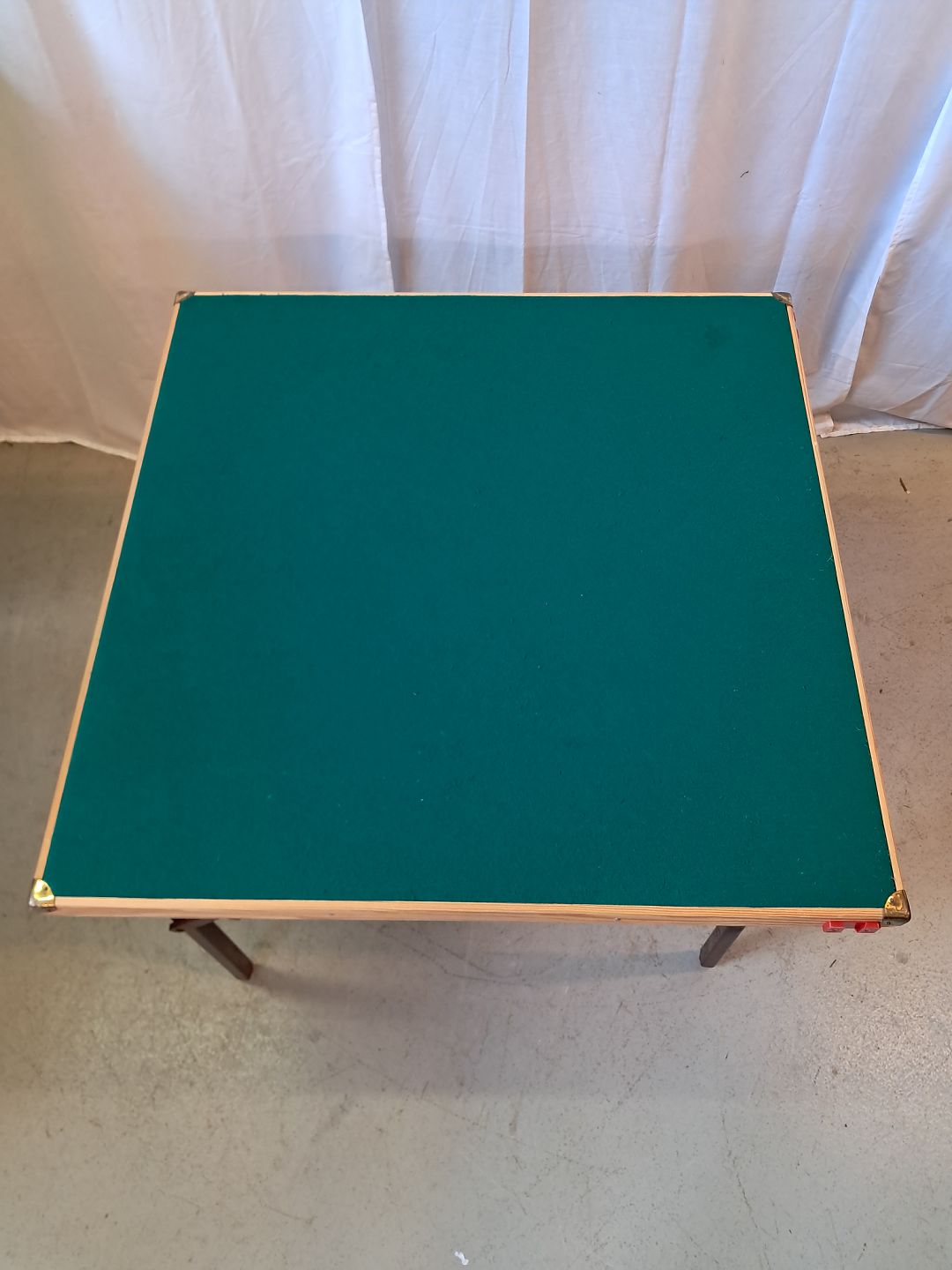 Spillebord med grøn filt og lister i fyrretræ, fra 1970erne.