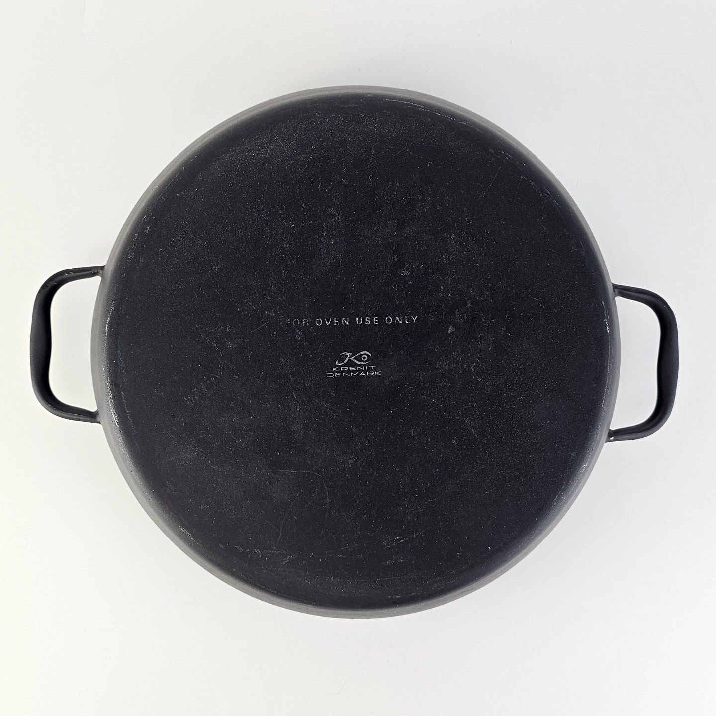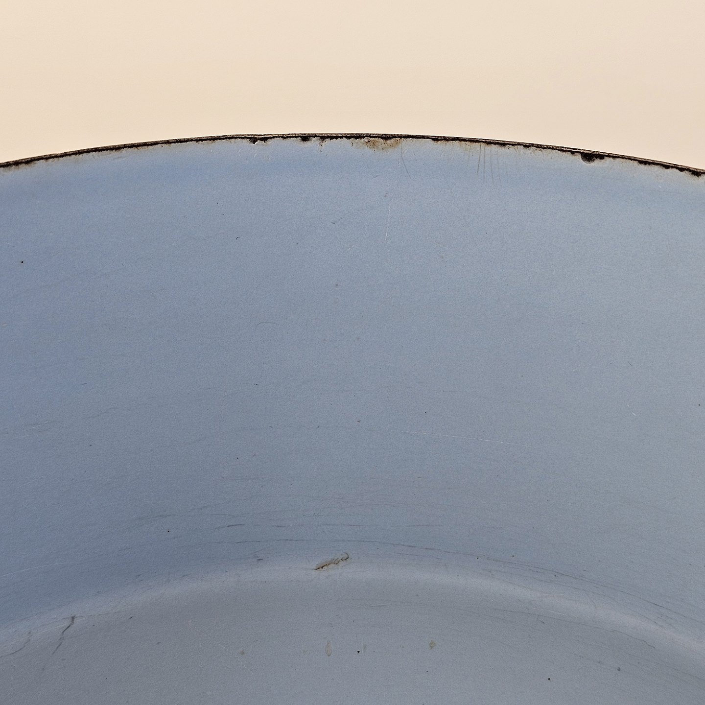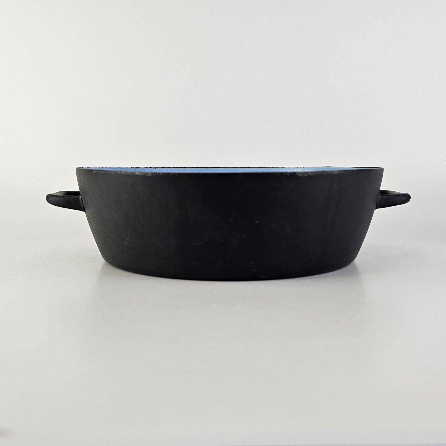 Oiginal sort skål med ører, med lyseblåt emalje på indersiden.
