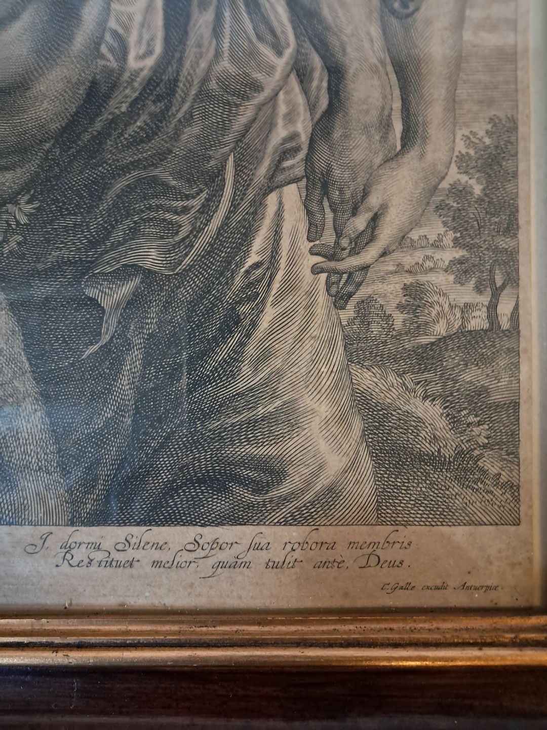 Gammelt stik i guldmalet ramme, fra 1900erne.