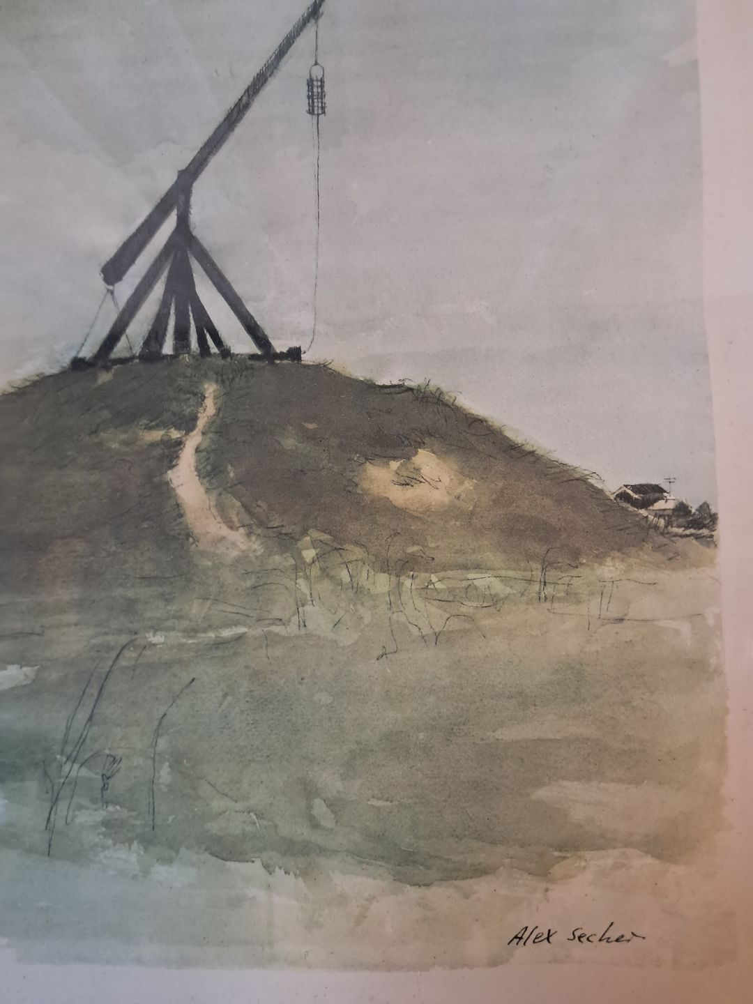 Tryk i ramme af fyrretræ med glas, fra 1960erne.