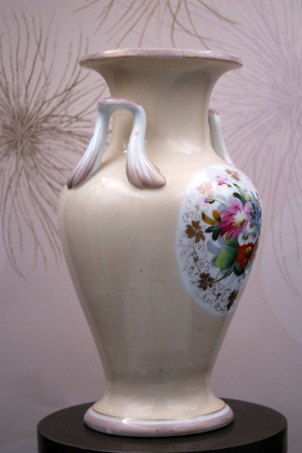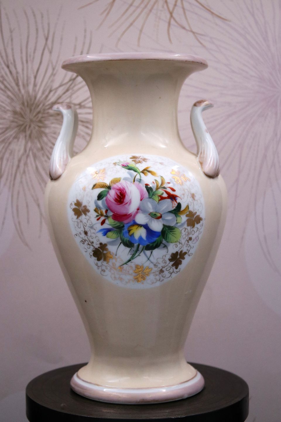 Antik , 1800 tals vase fra Bing & Grøndahl med hanke og bemalet blomstermotiver...