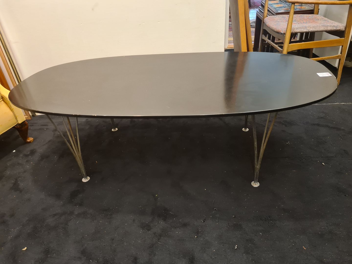 Piet Hein Ellipse sofabord i original sort lakeret træ m. metal ben.