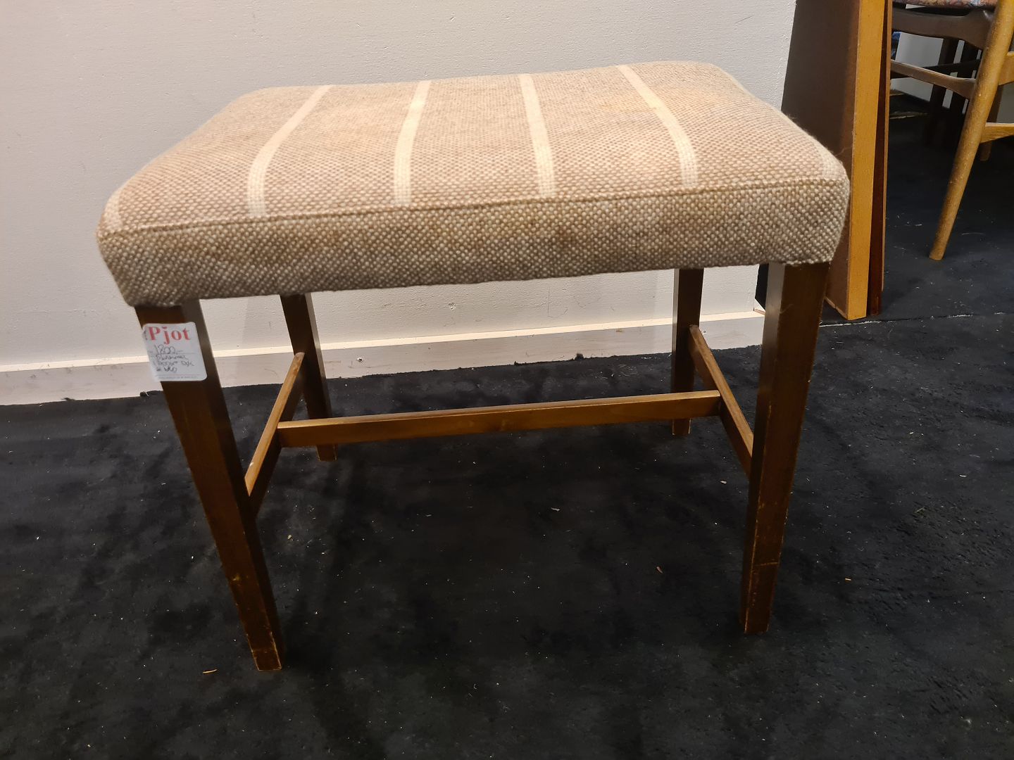 Dansk møbelproducent taburet m. sæde af uldstof samt stel af bejdset bøg.