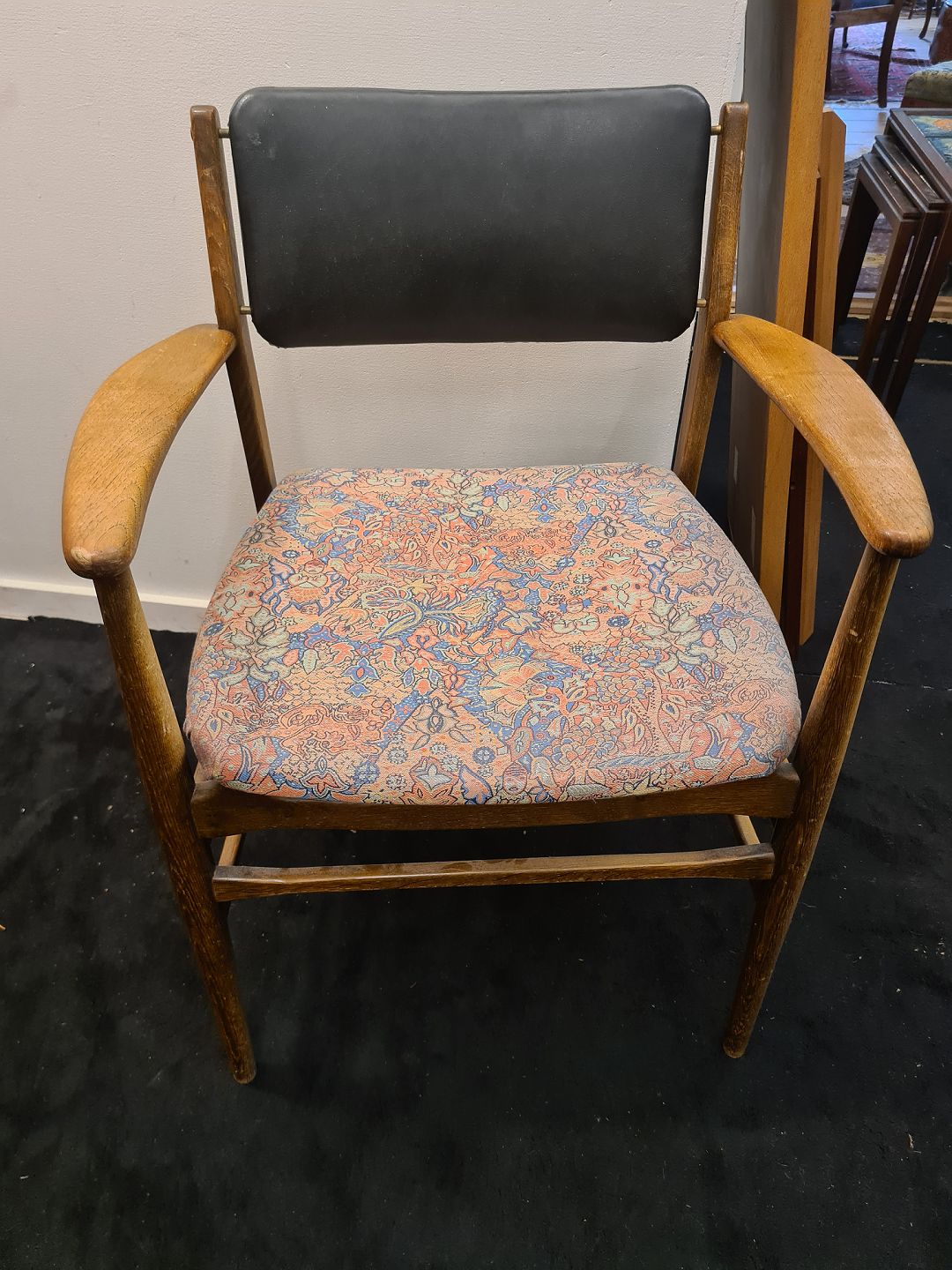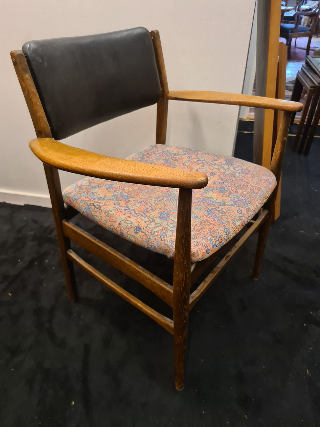 Dansk møbelproducent armstol udført i bejdset eg m. armlæn i massiv teak.