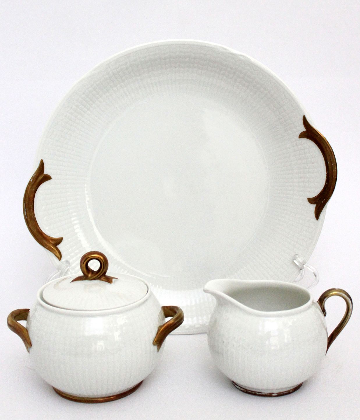 Sukker og fløde, samt kagefad, Grace med guld, Rørstrand