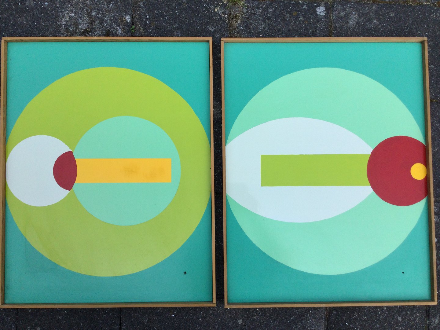 2 malerier - Kompositioner med cirkler mv.