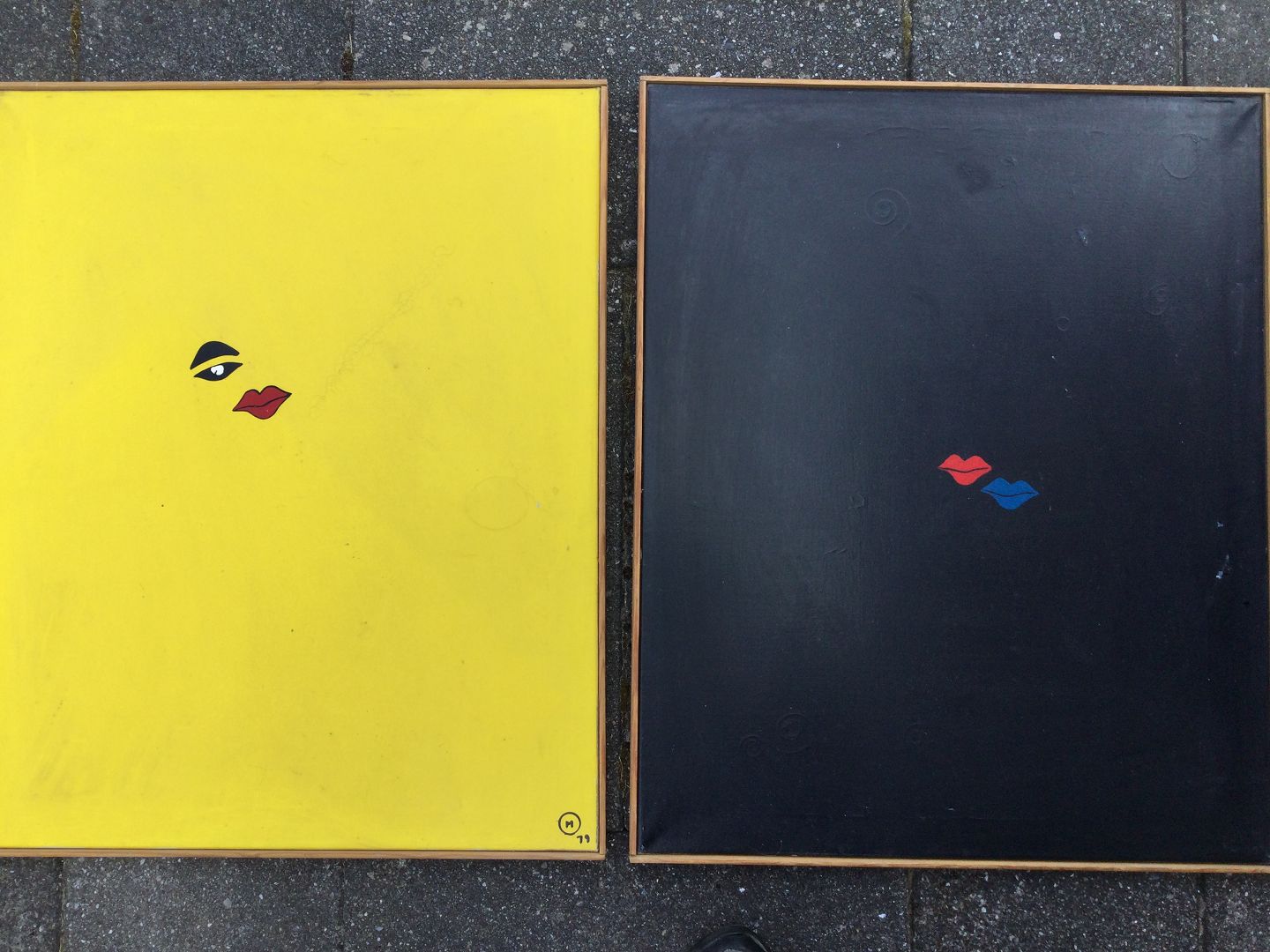 Malerier af Flemming Moe - Kompositioner med læber 1979.