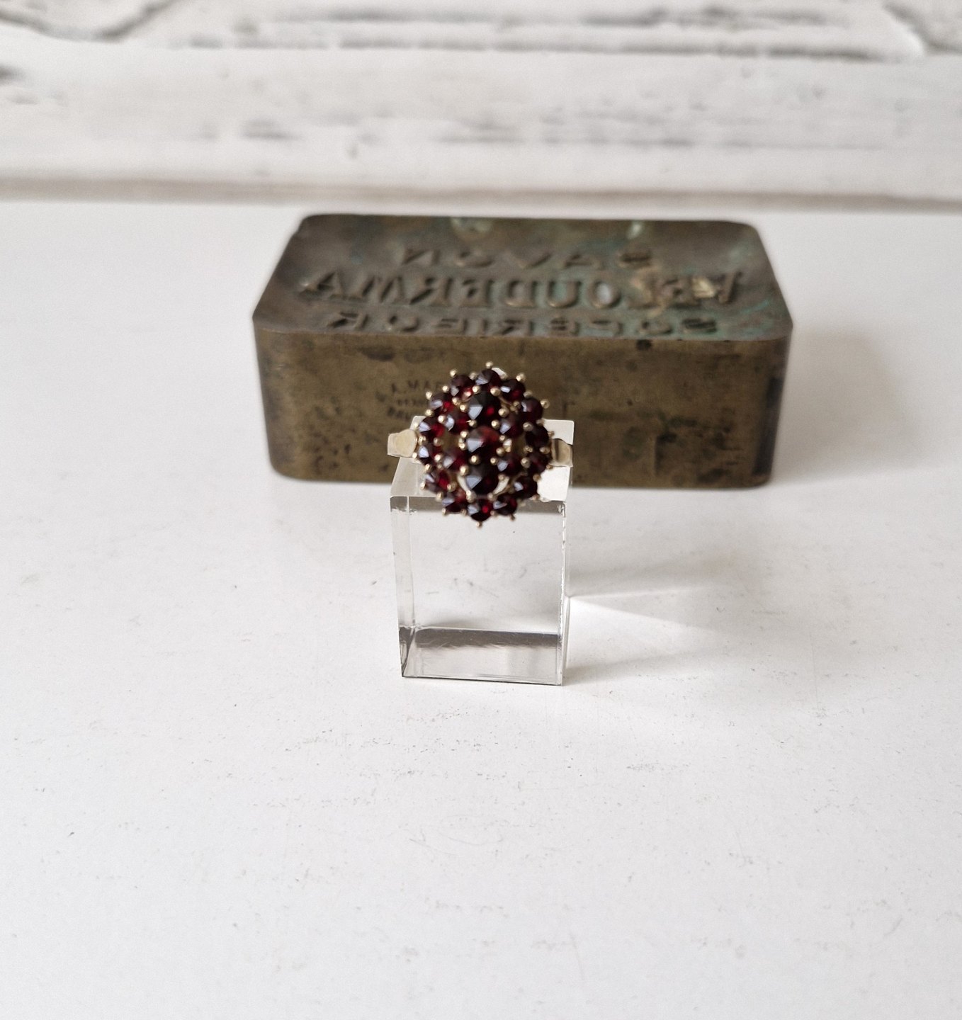 Vintage ring i forgyldt sølv med talrige smukke mørke granater.