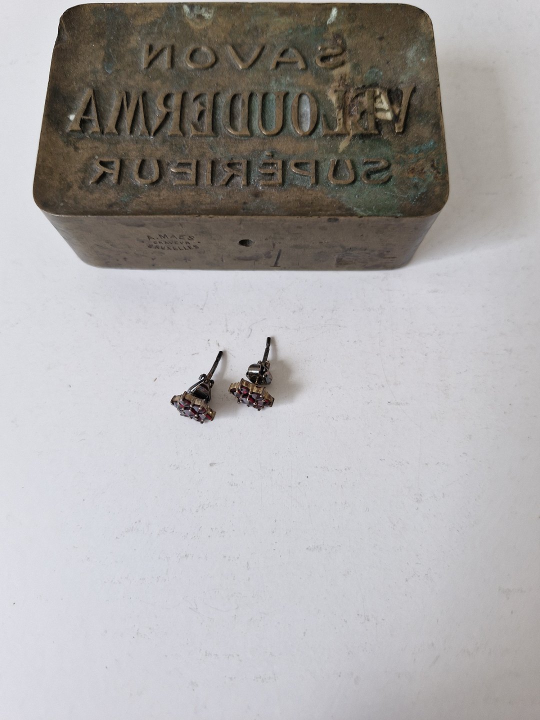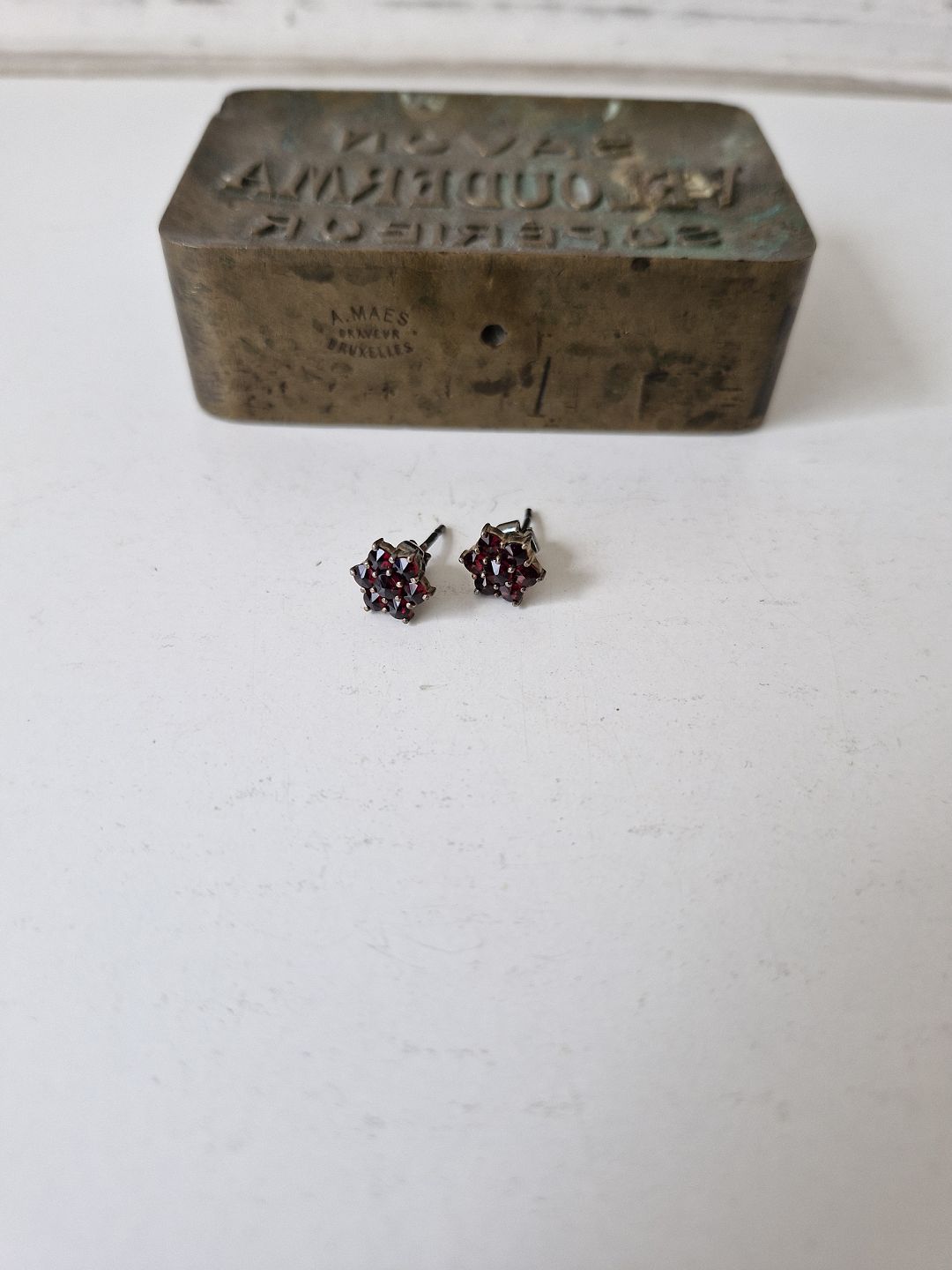 Par vintage stjerneformede øreringe i forgyldt sølv prydet med talrige mørkerøde granater
