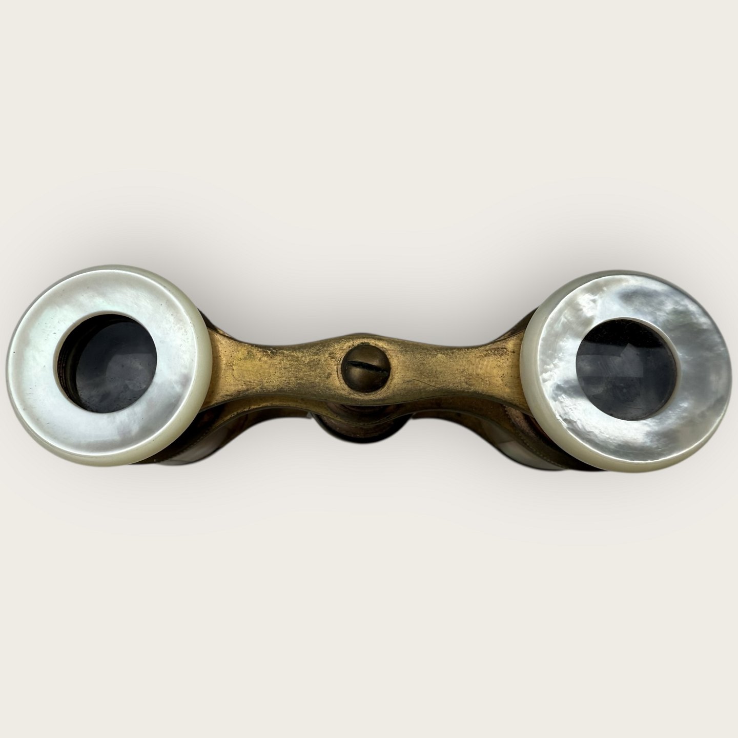 Teaterkikkert med perlemor og hylster, pæn patineret stand, 9x3,5 cm.