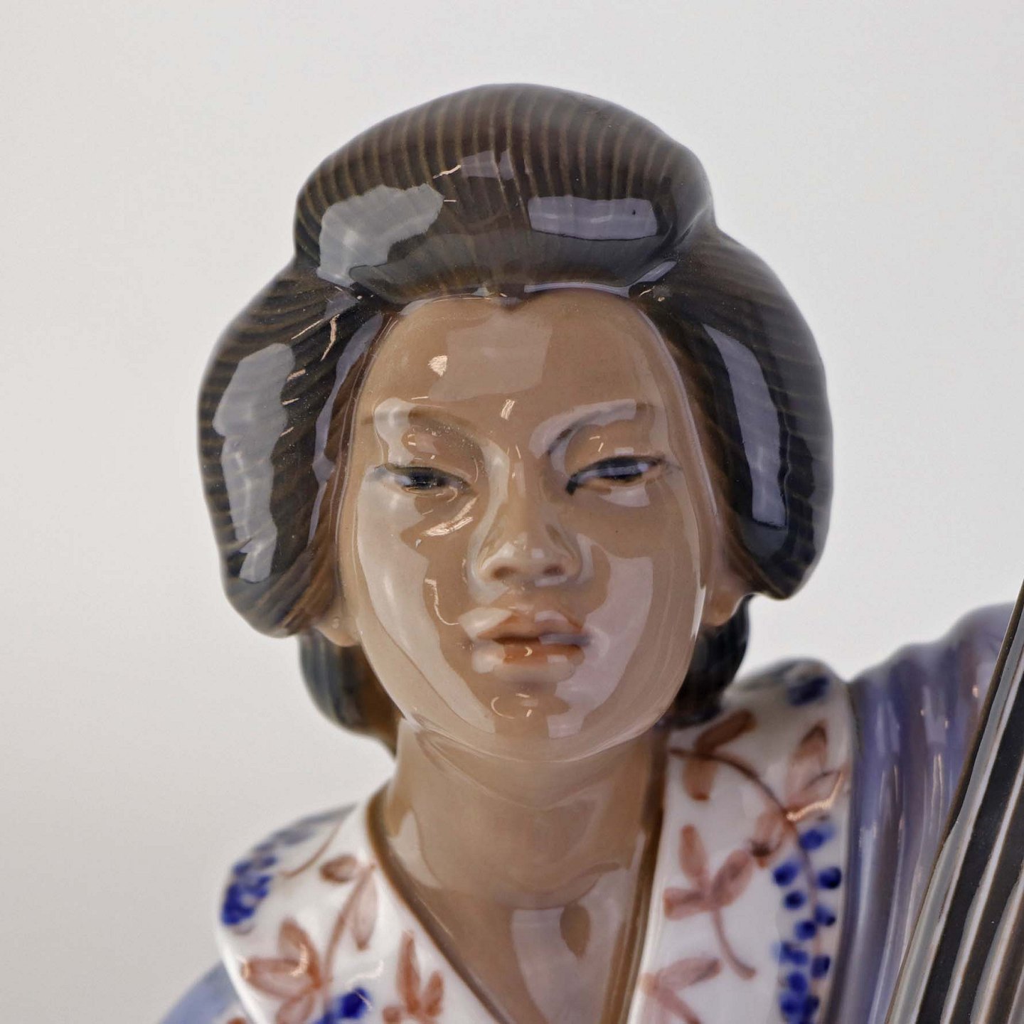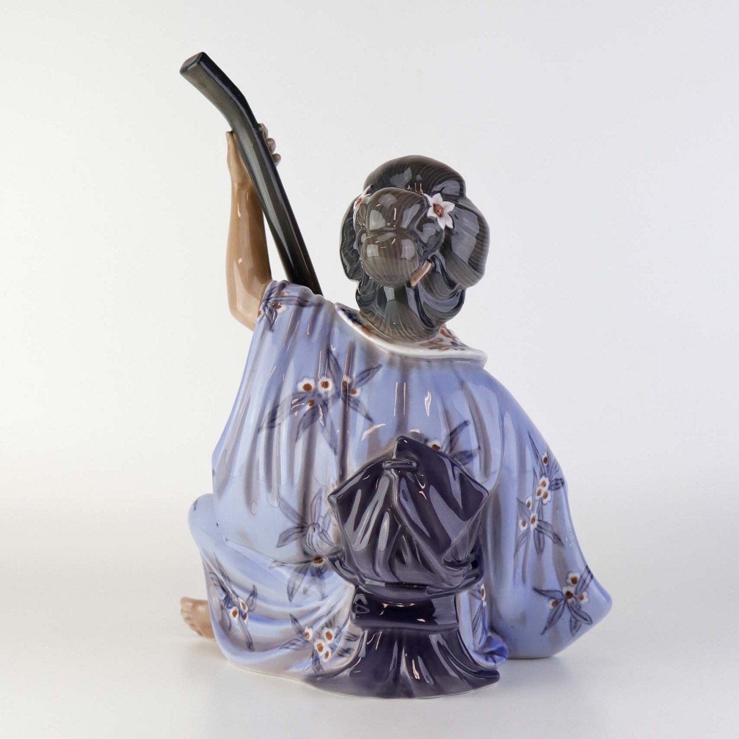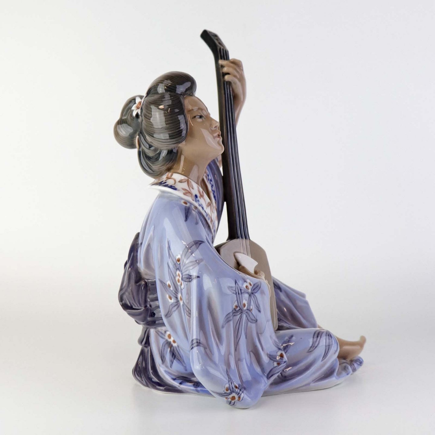 Figur i porcelæn med motiv af siddende japansk Geisha som spiller lut. Nr. 1155