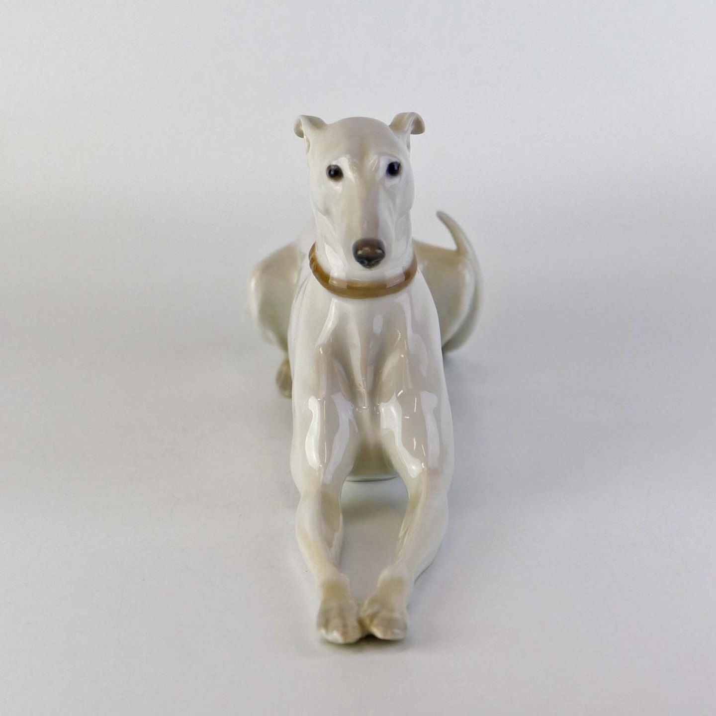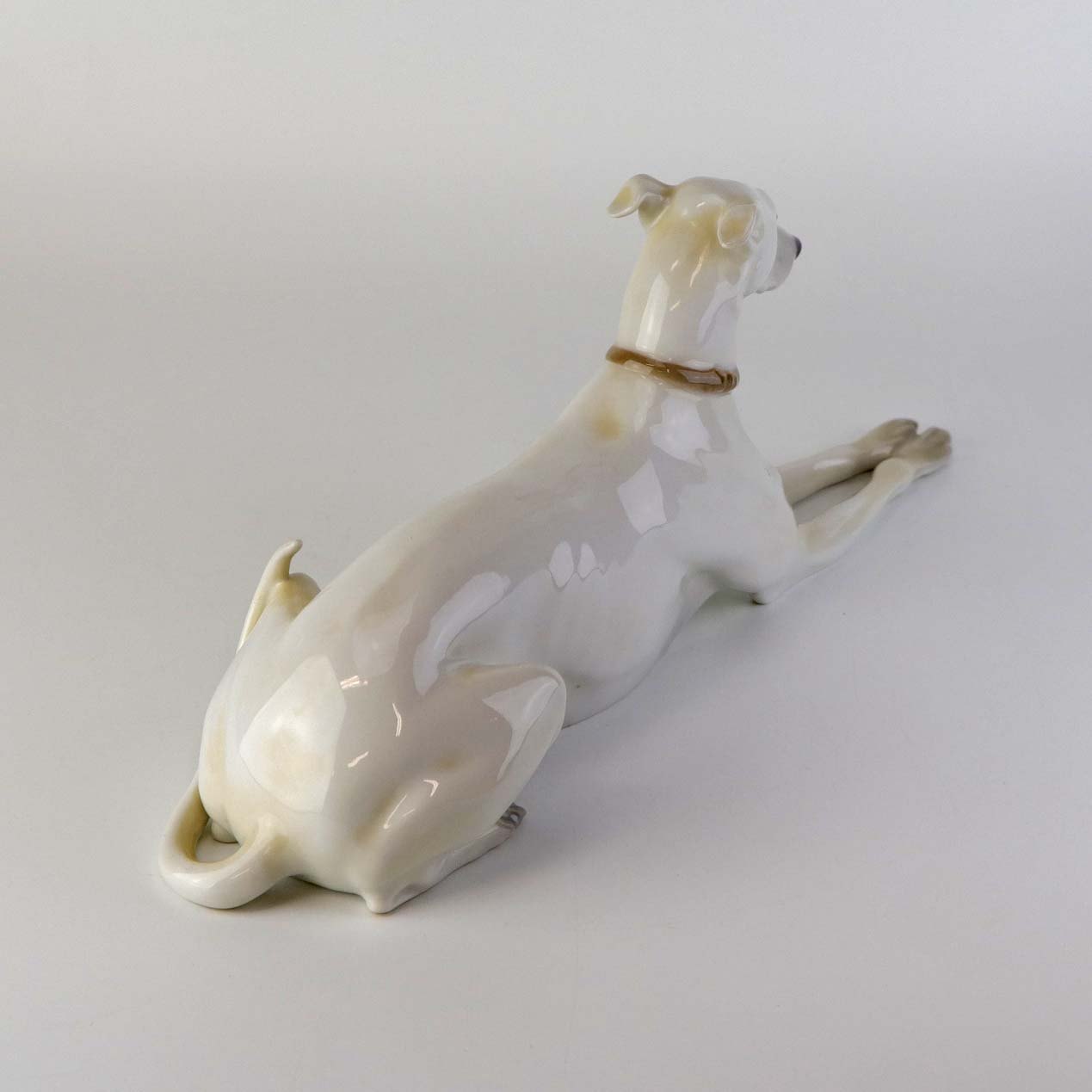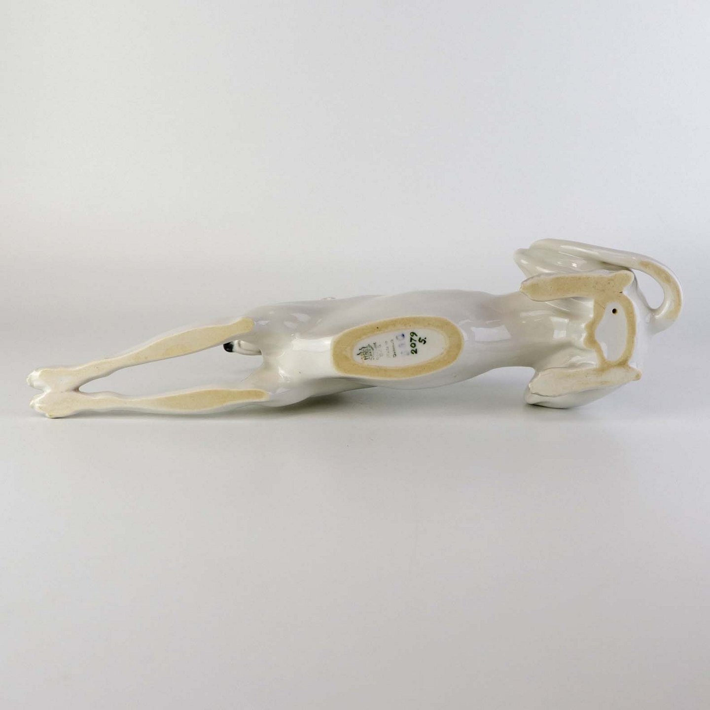 Figur i porcelæn med motiv af liggende hvid greyhound. Nr. 2079 5