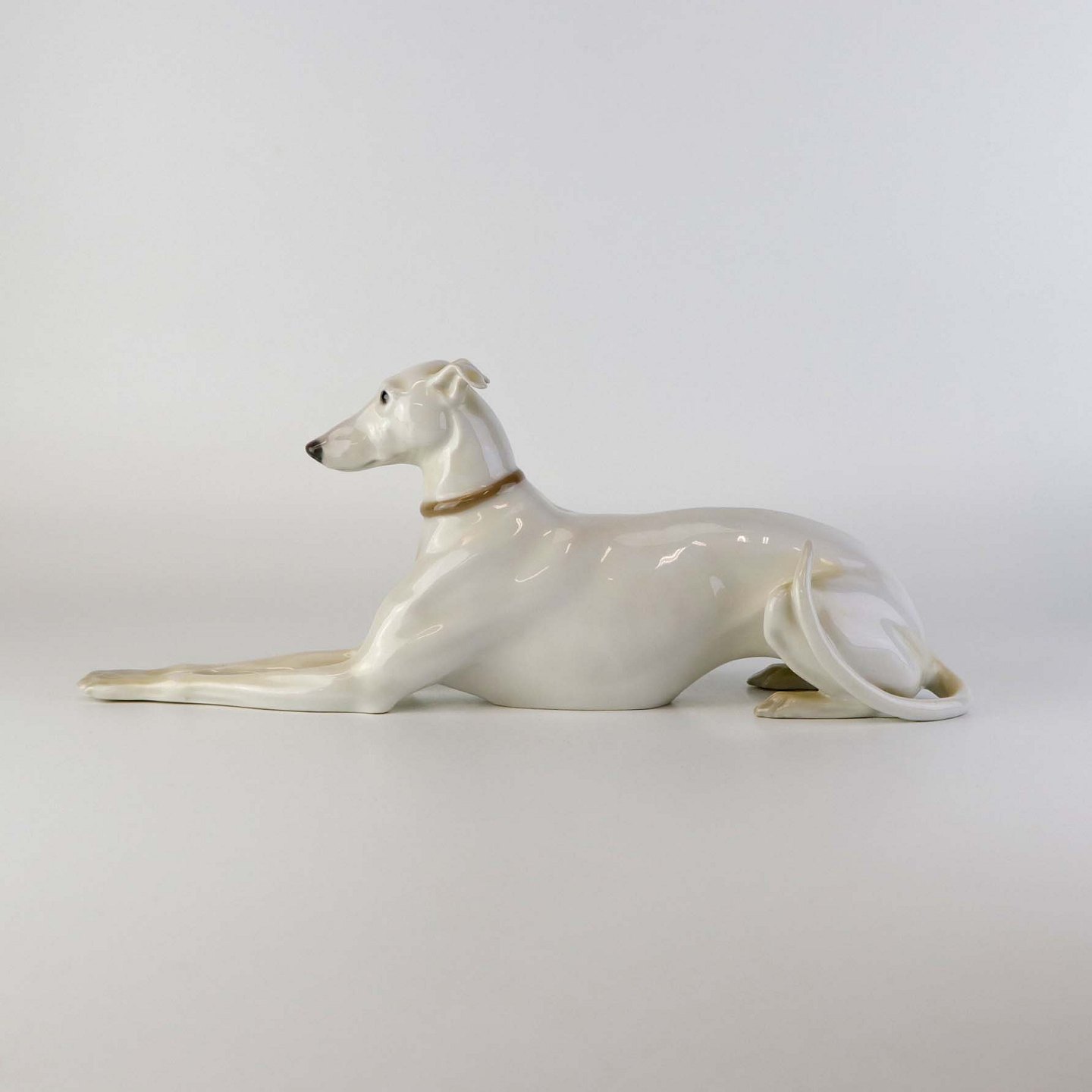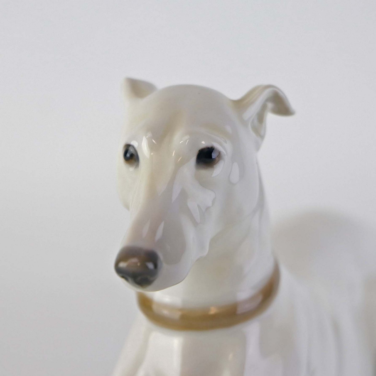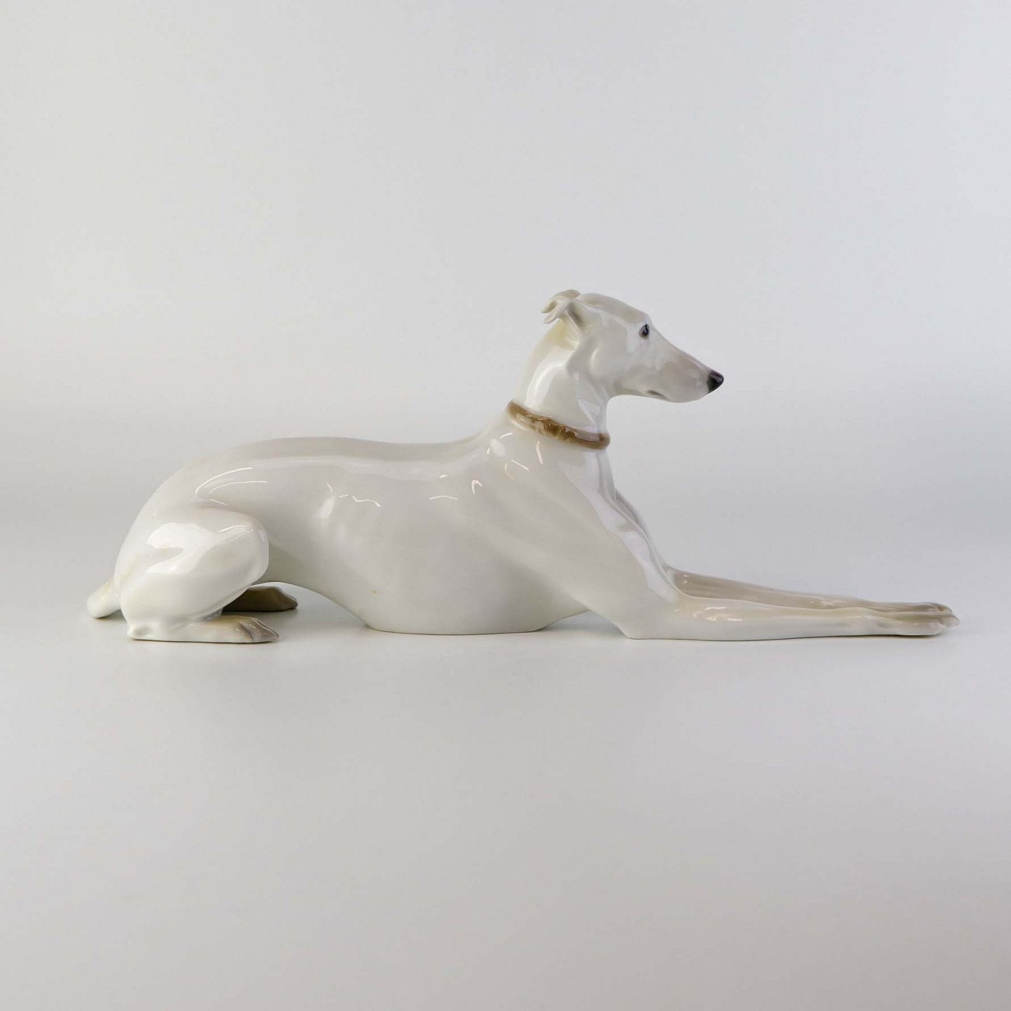 Figur i porcelæn med motiv af liggende hvid greyhound. Nr. 2079 5