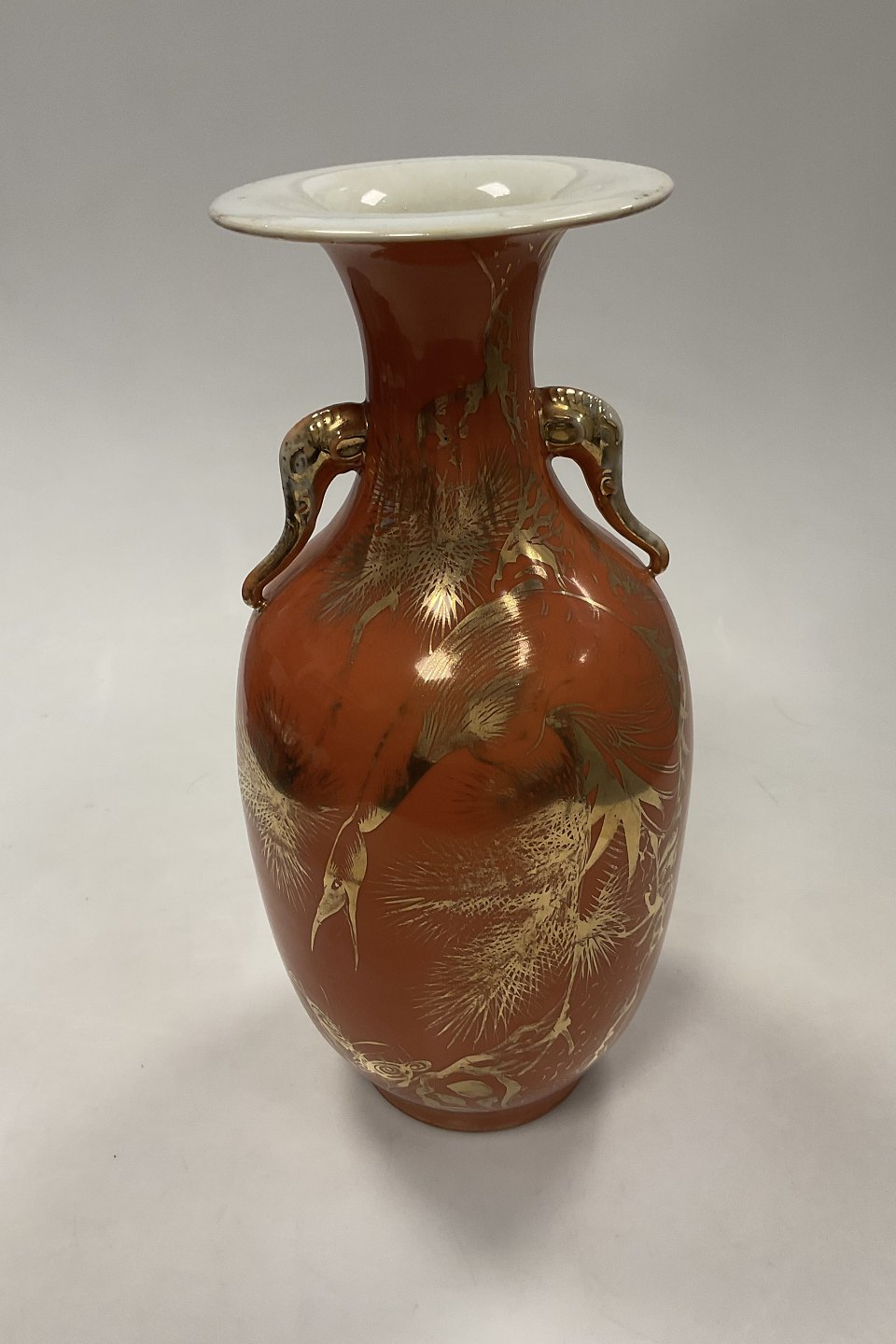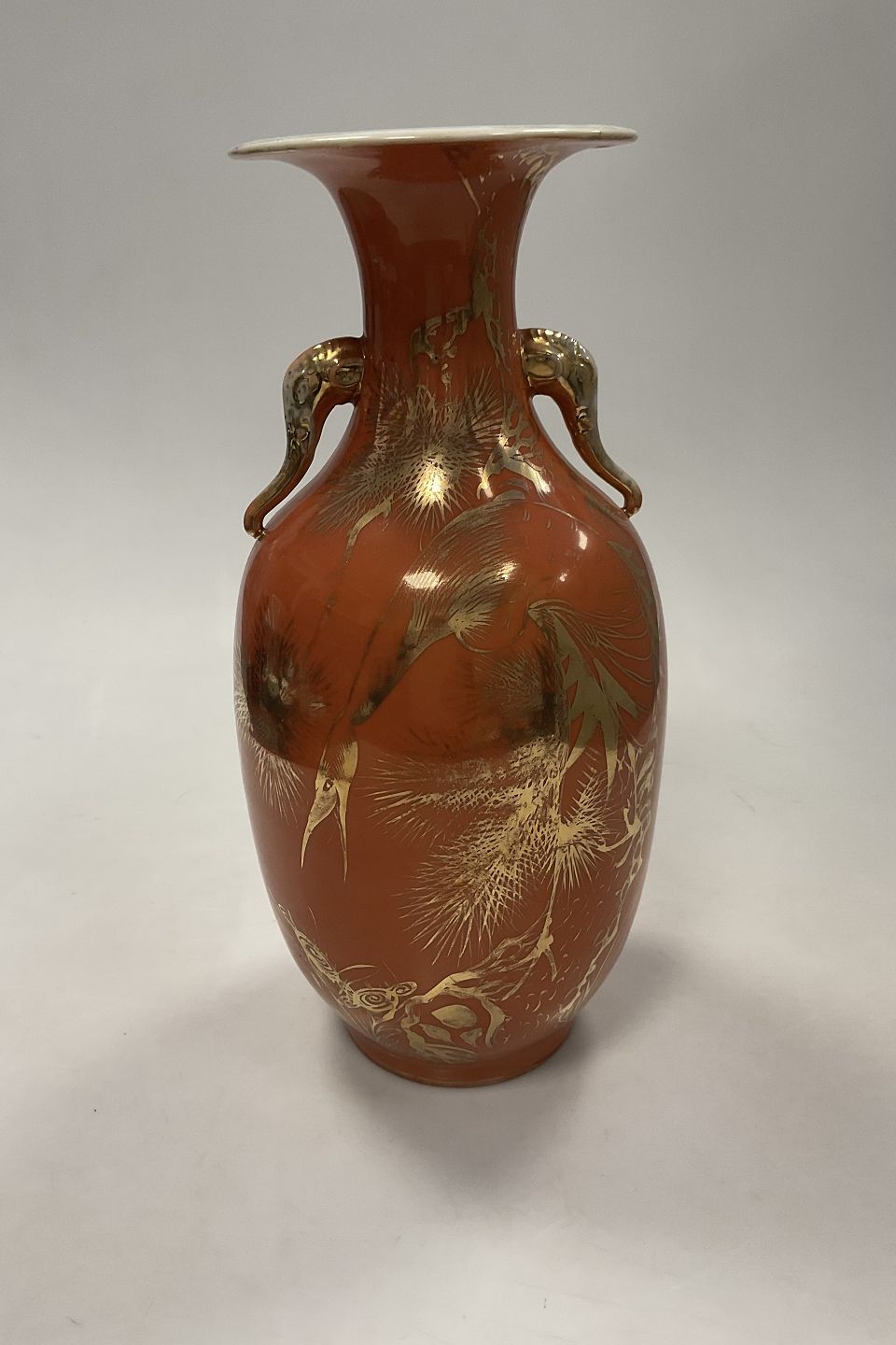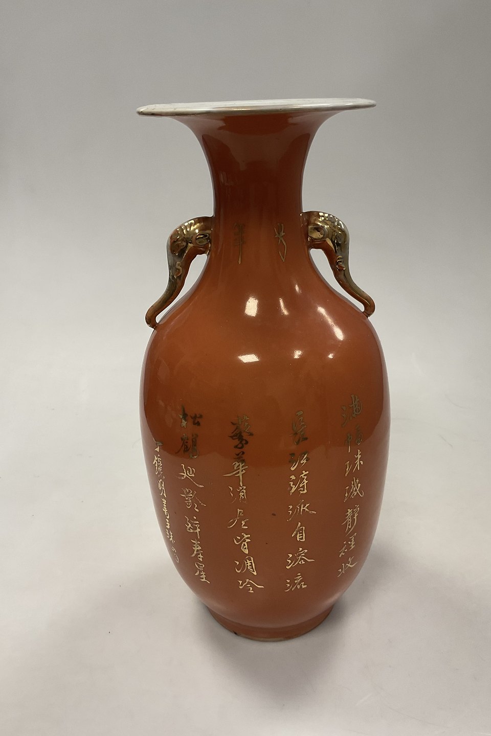 Orientalsk Kinesisk Vase i Orange / Guld med Elefant håndtag