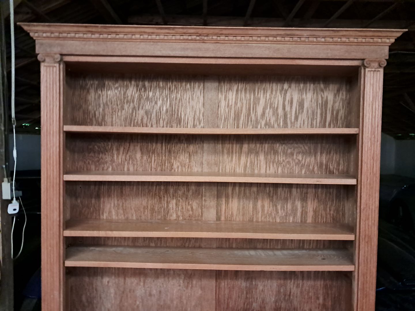 Reol : Højde 141cm Bredde 147cm Dybde 32cm, Total højde 218cm