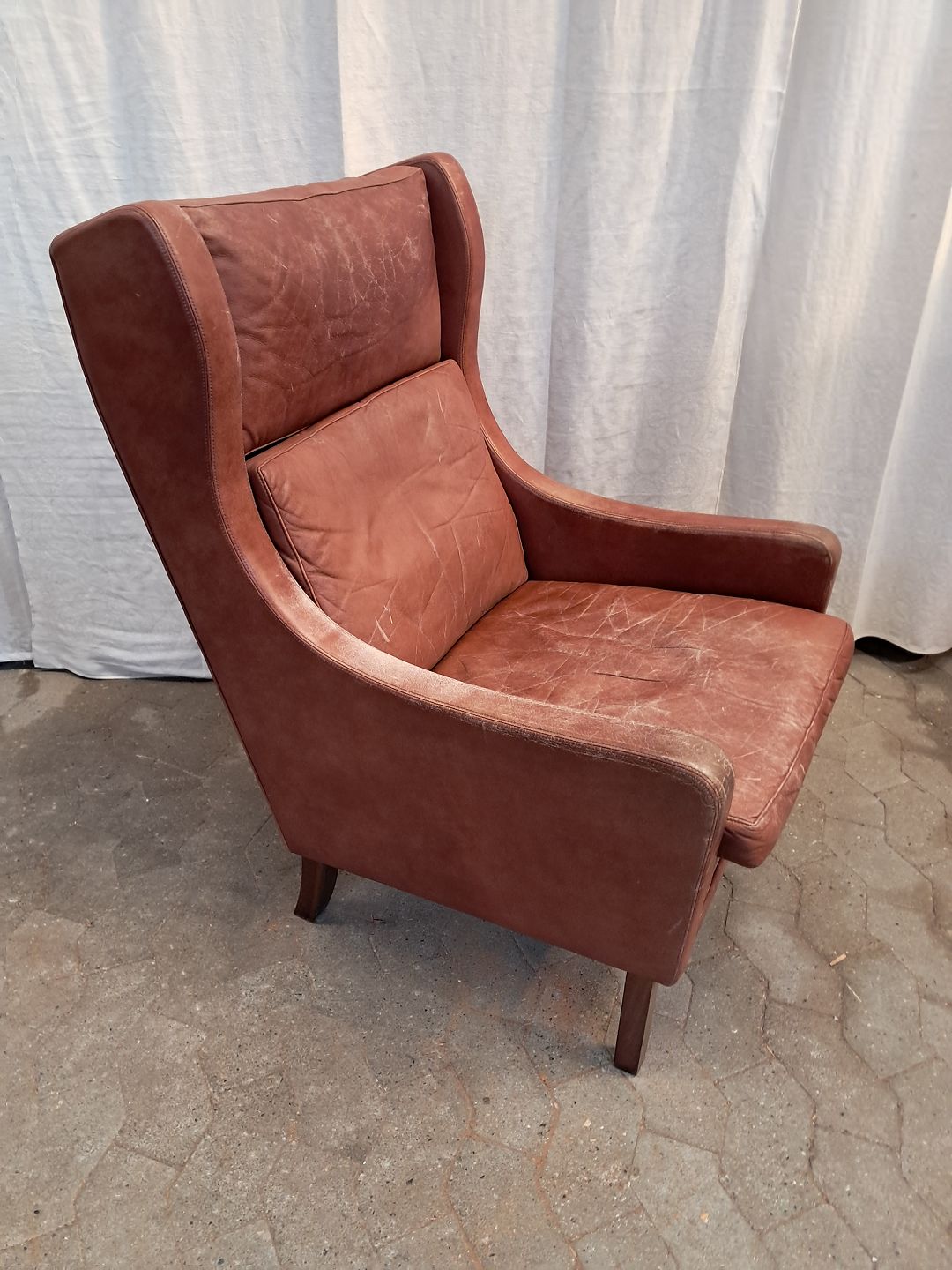 Læderet er intakt, men trænger til læderfedt.