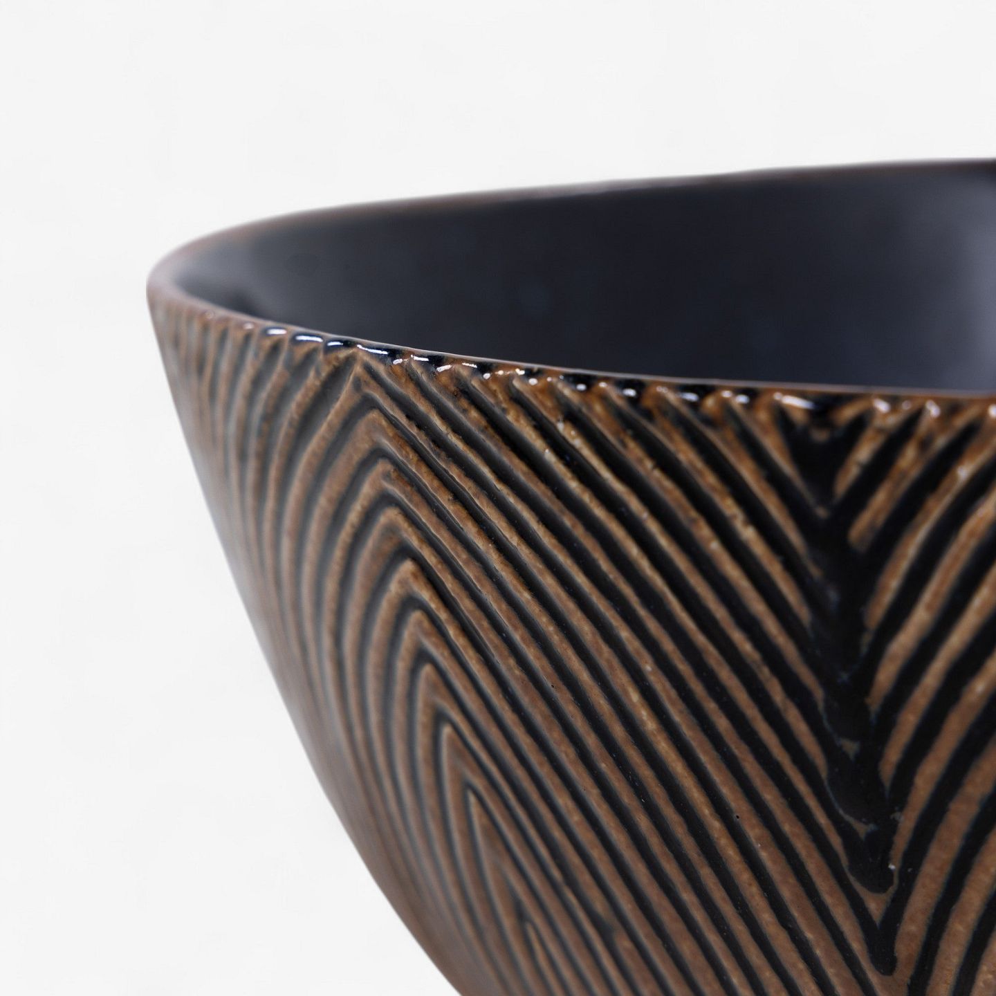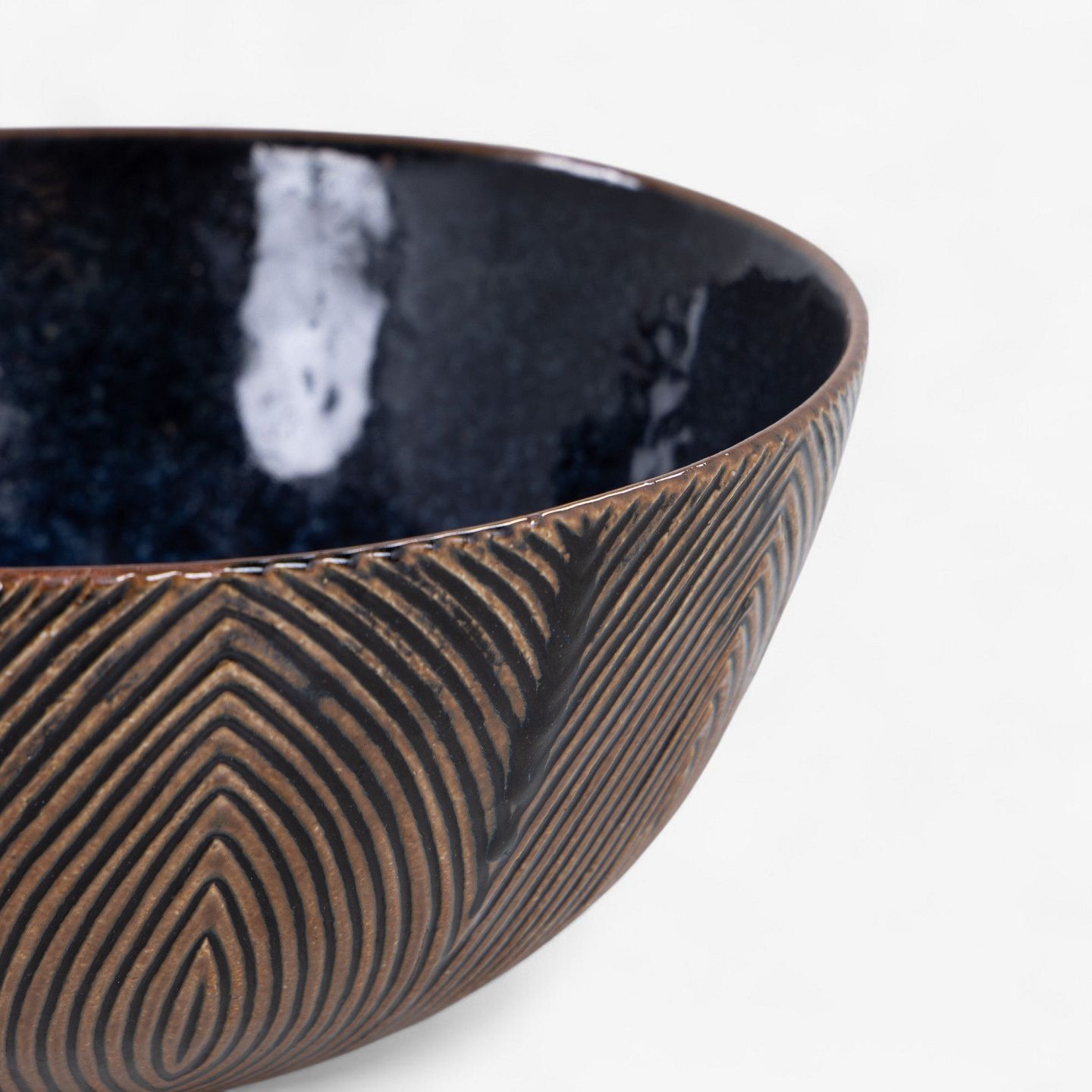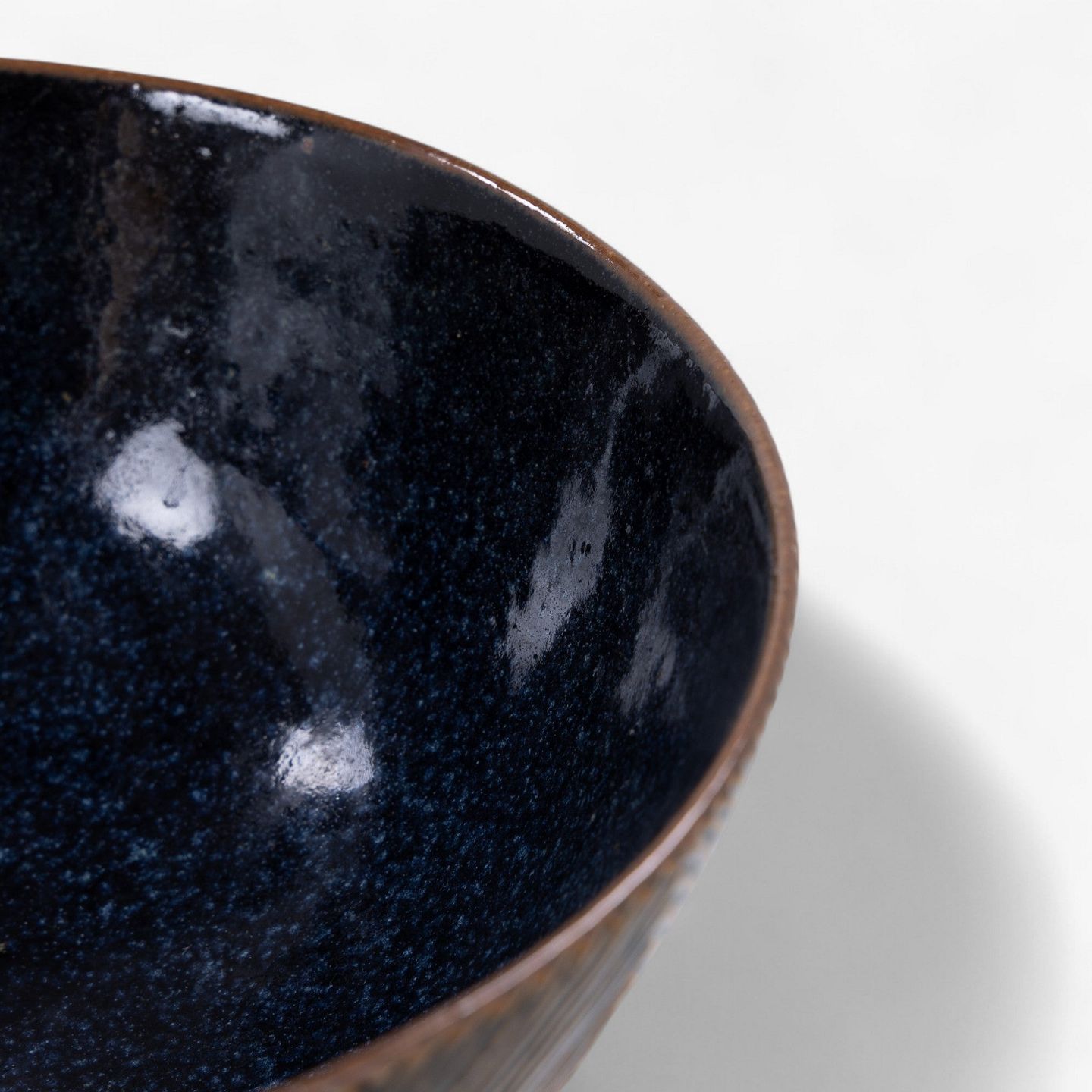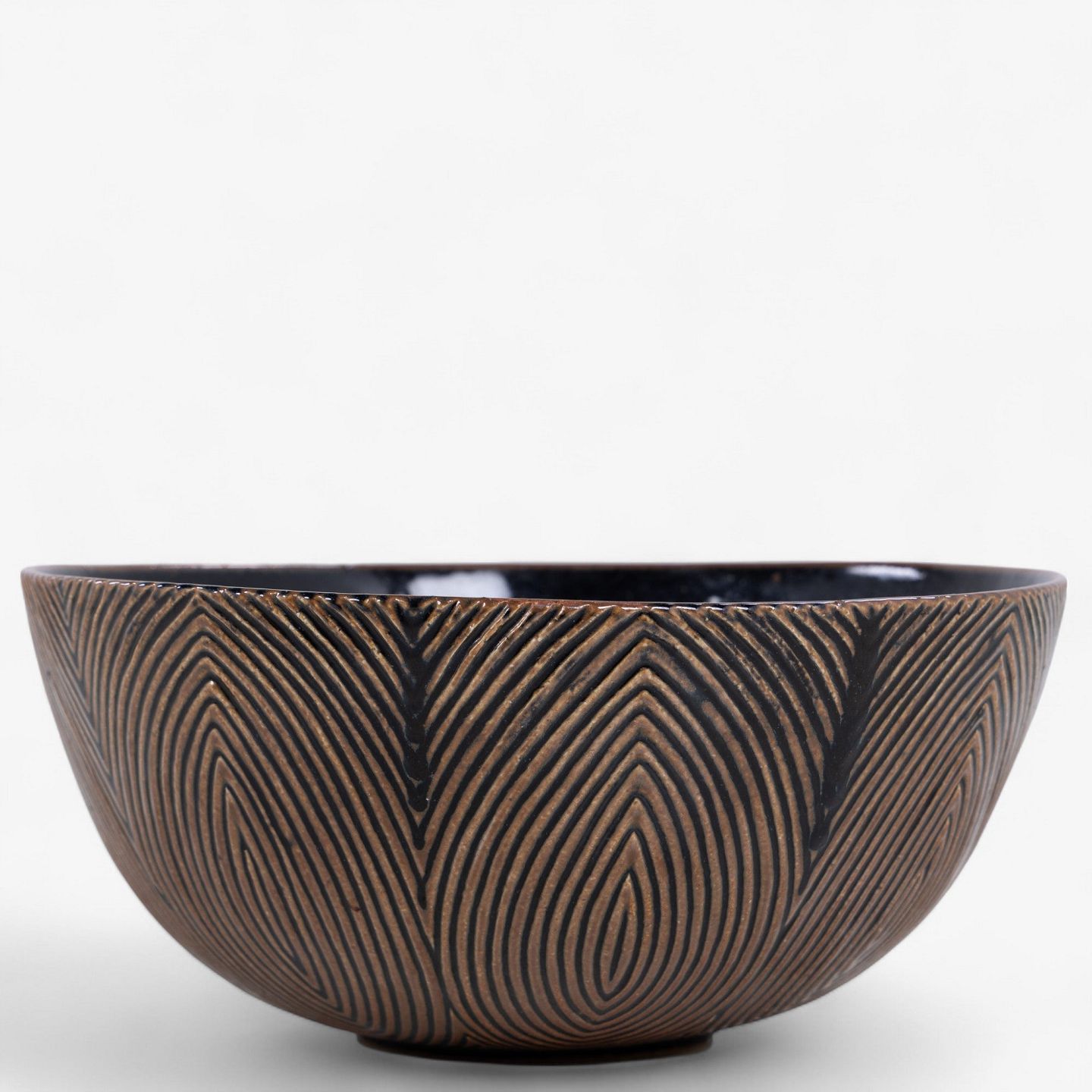 Large and rare fluted bowl, glazed with Sung glaze and a mussel glaze on the inside. Model 20675. Signed. Designed in 1944.
