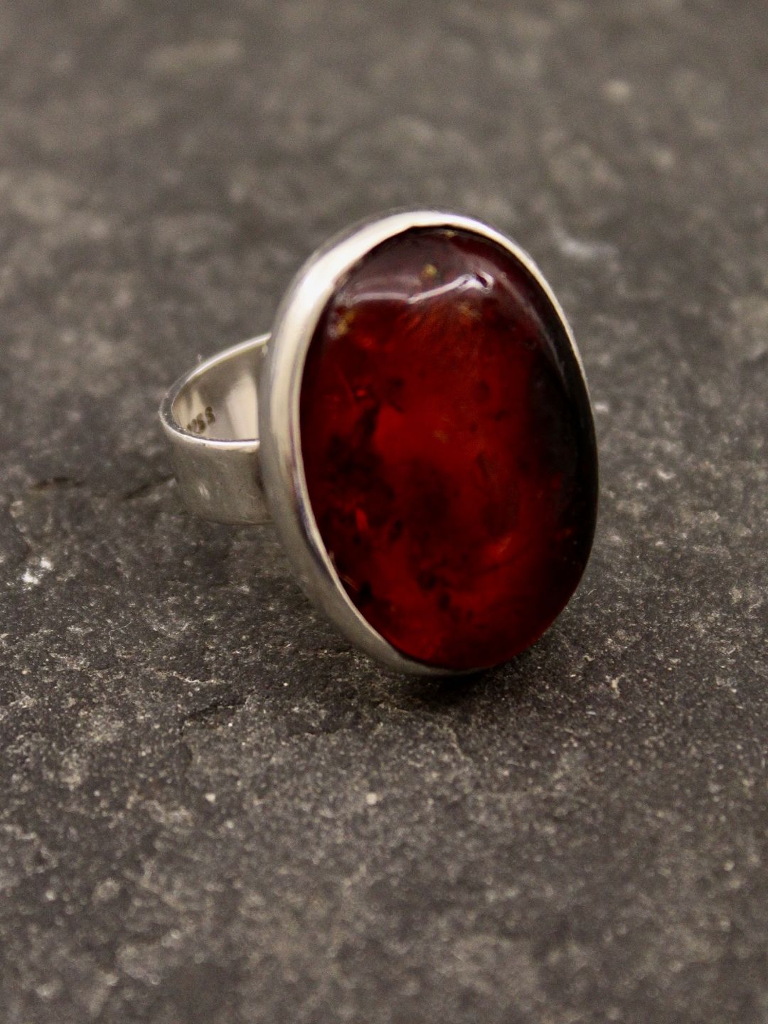 Sterling sølv ring med rav størrelse 56 rav 2.7 x 2cm. emne nr. 613286