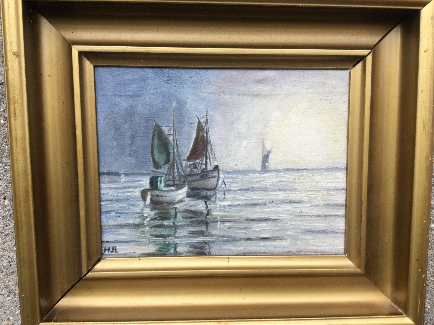 Maleri - Sejlskibe på vandet.