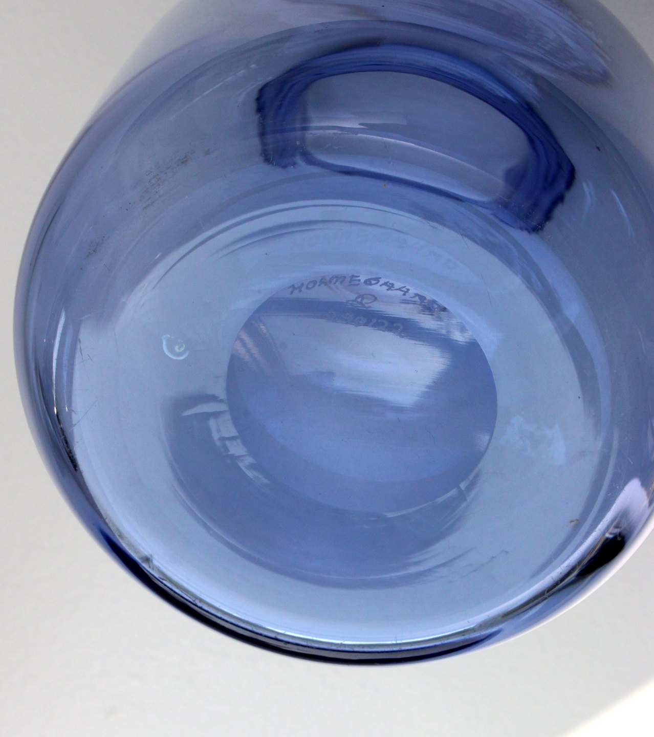 Holmegaard, Safir serie designet af Per Lütken. Produceret fra 1955 til midten af 1970'erne. Vase, designet i 1960. Signeret Holmegaard. PL 290122. Højde 11 cm. Største diameter 9 cm. Fin stand. Pris: 325 kr.