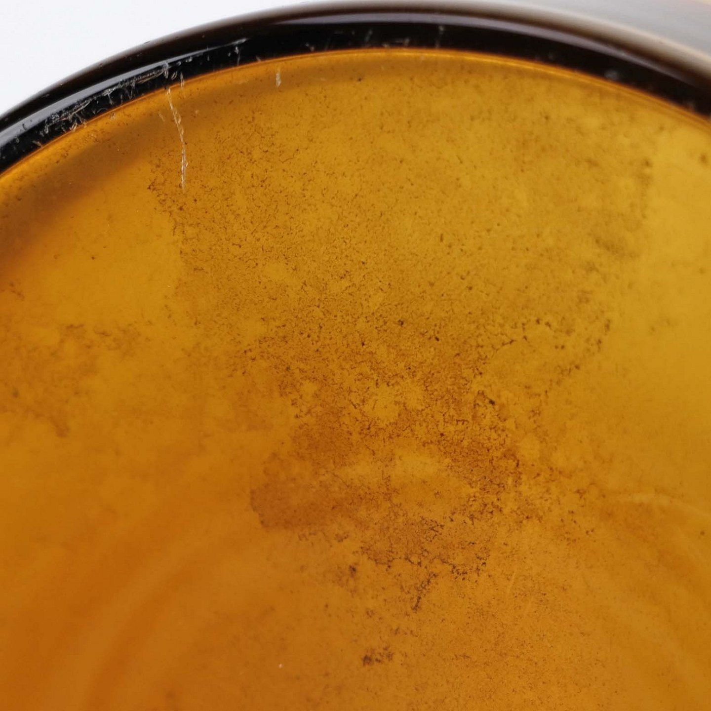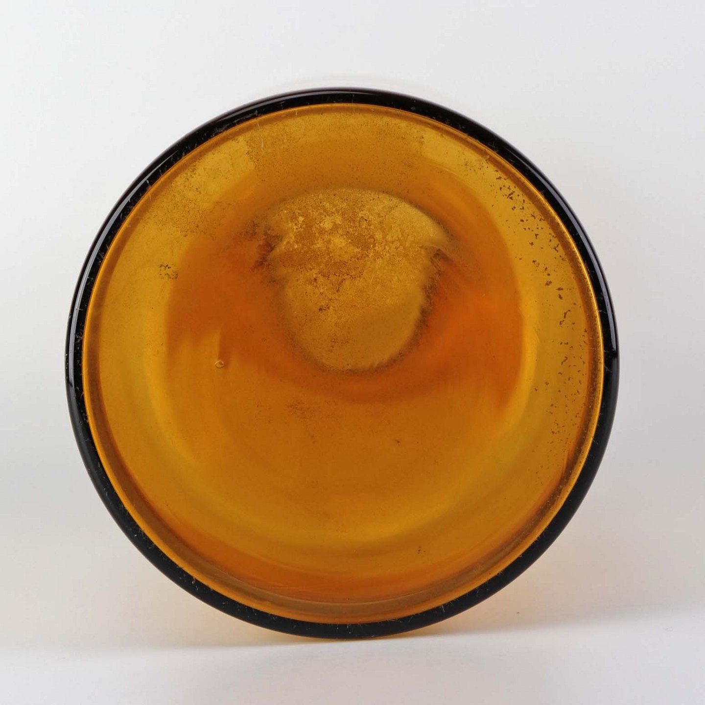 Fremstår med to små bobler i glasset, brugsspor under bund samt indvendigt smuds.