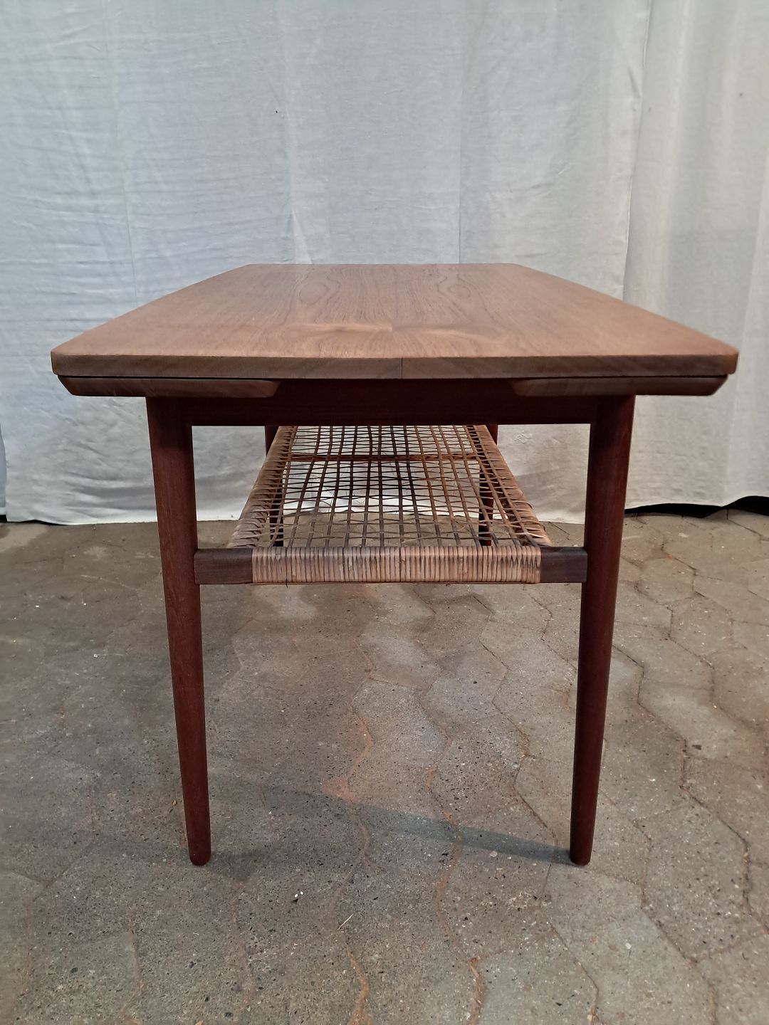 Sofabord i fineret teaktræ med hollandsk udtræk, fra 1960erne.