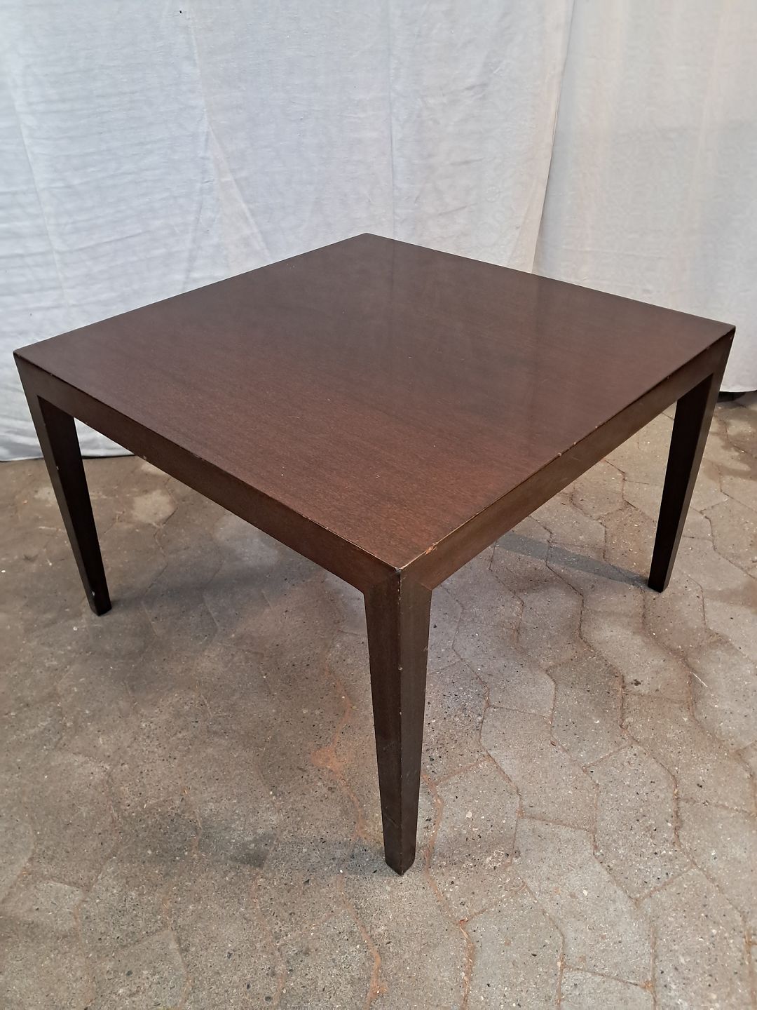 Kvadratisk Haslev sofabord i fineret mahogni, fra 1980erne.