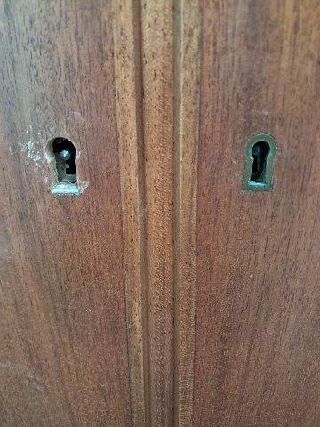 Den har brugsspor og mangler et låsebeslag. (se foto)