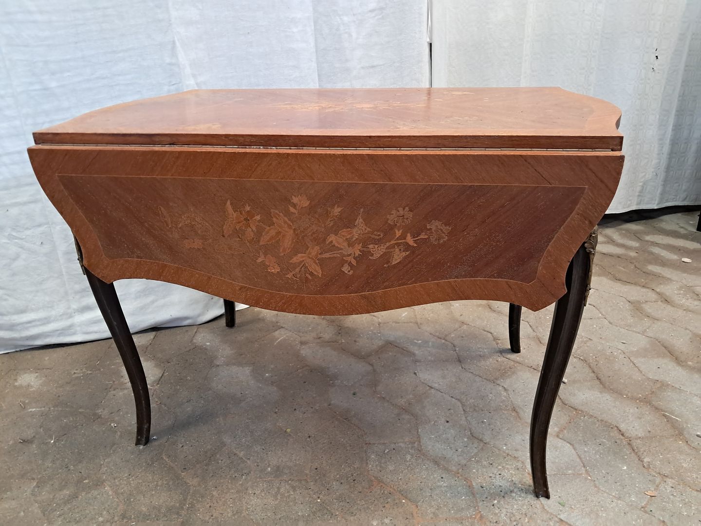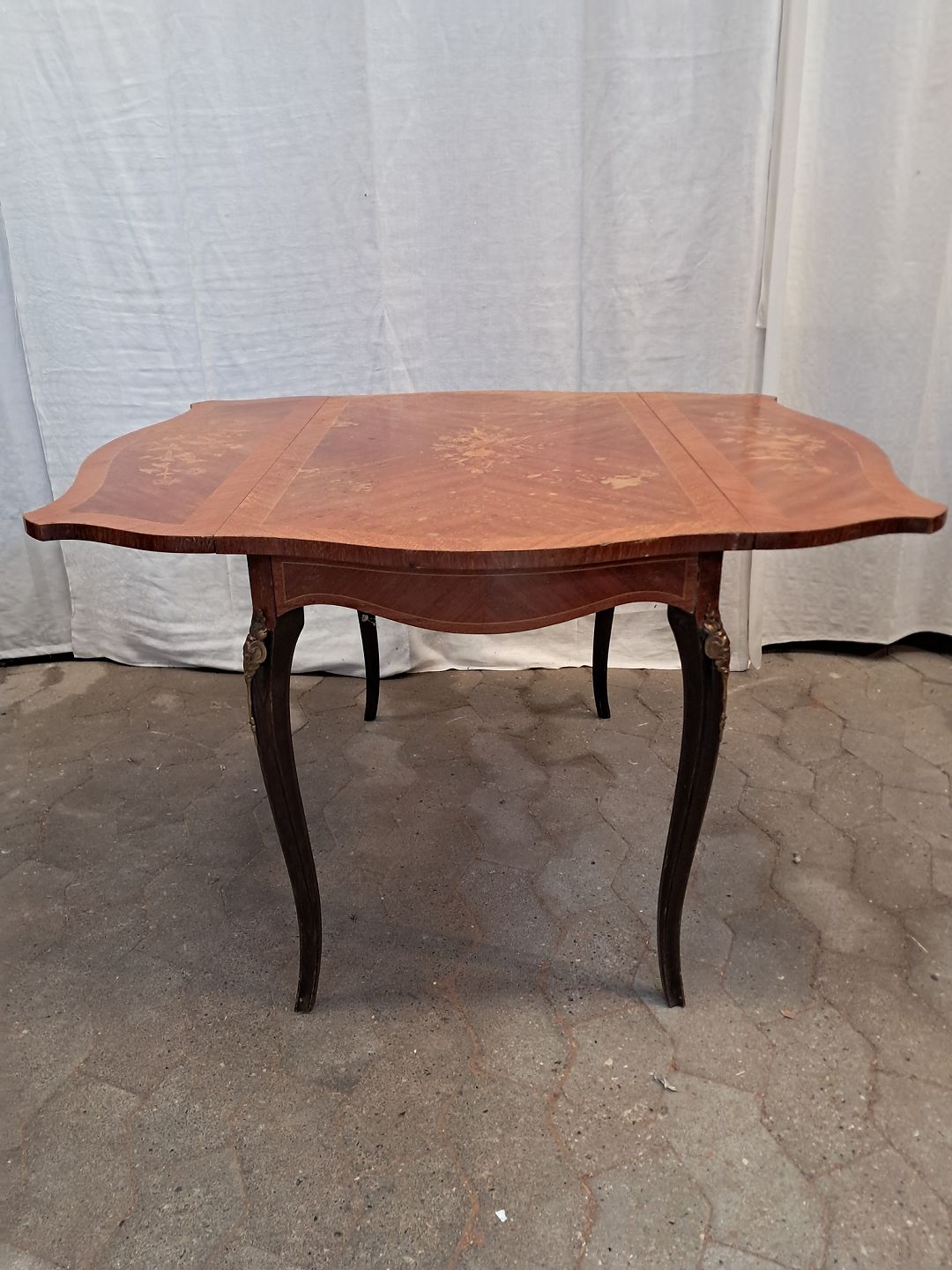 Sofabord i fineret mahogni med klapper, fra 1980erne.