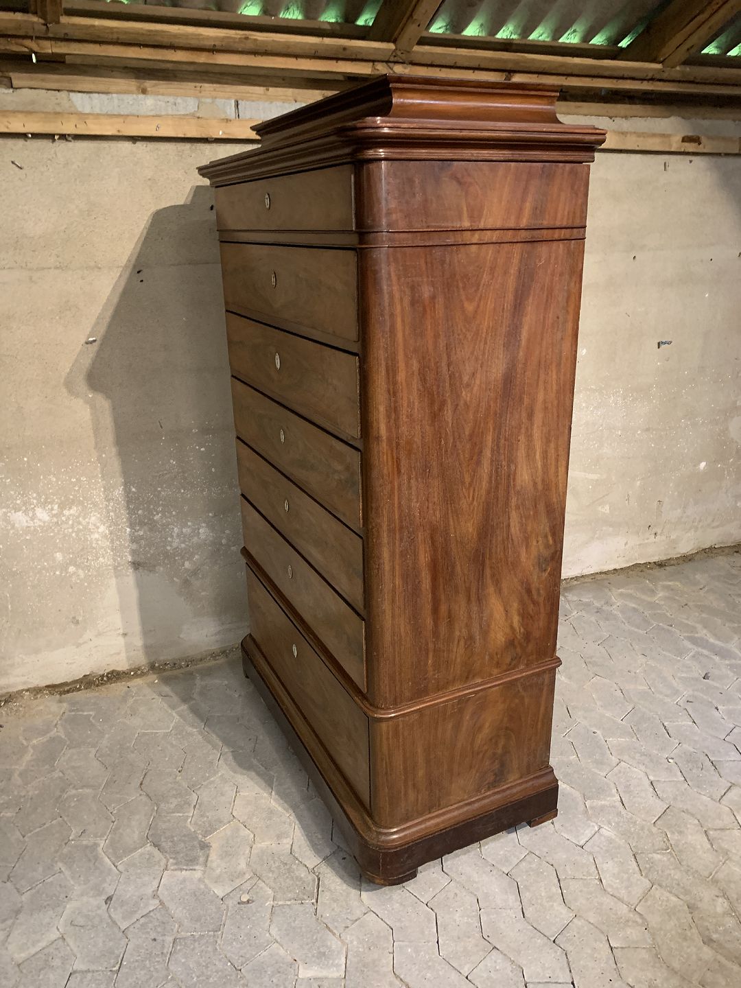 Stor kommode i fineret mahogni, fra 1890erne.