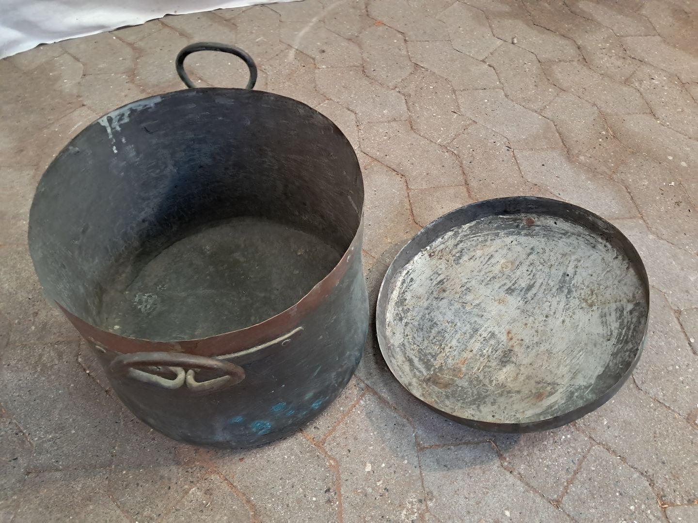Brændespand med låg i kobber, fra 1910erne.