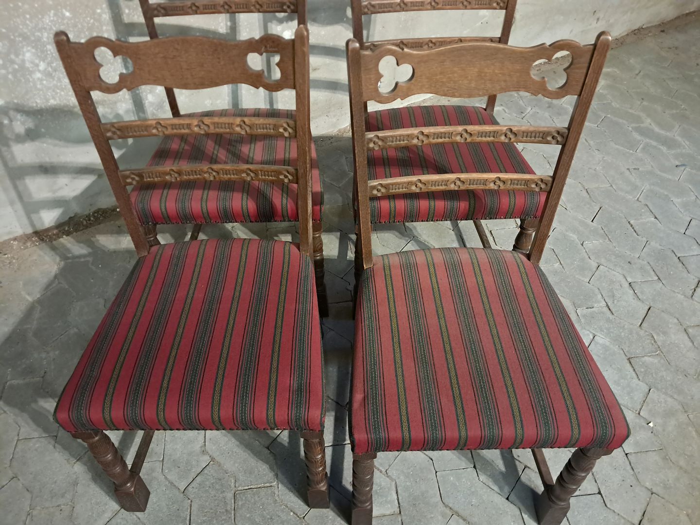 4 Stole i massivt egetræ, fra 1980erne.