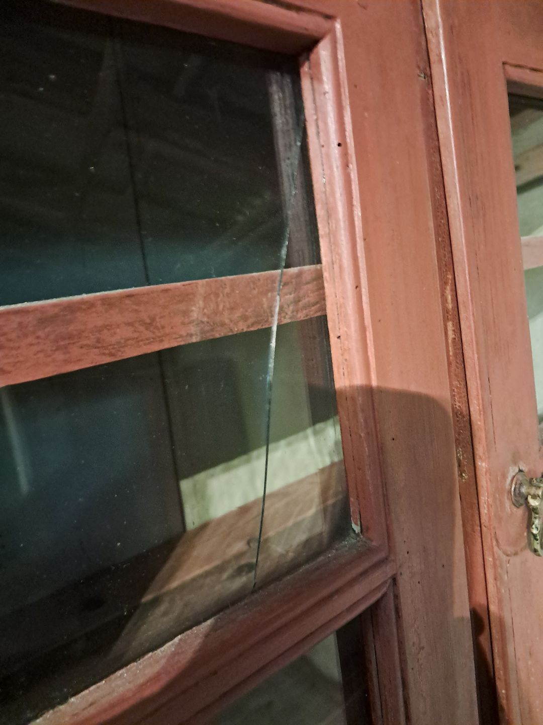 Det har en revne i den ene glasrude og soklen har defekter.(se foto)