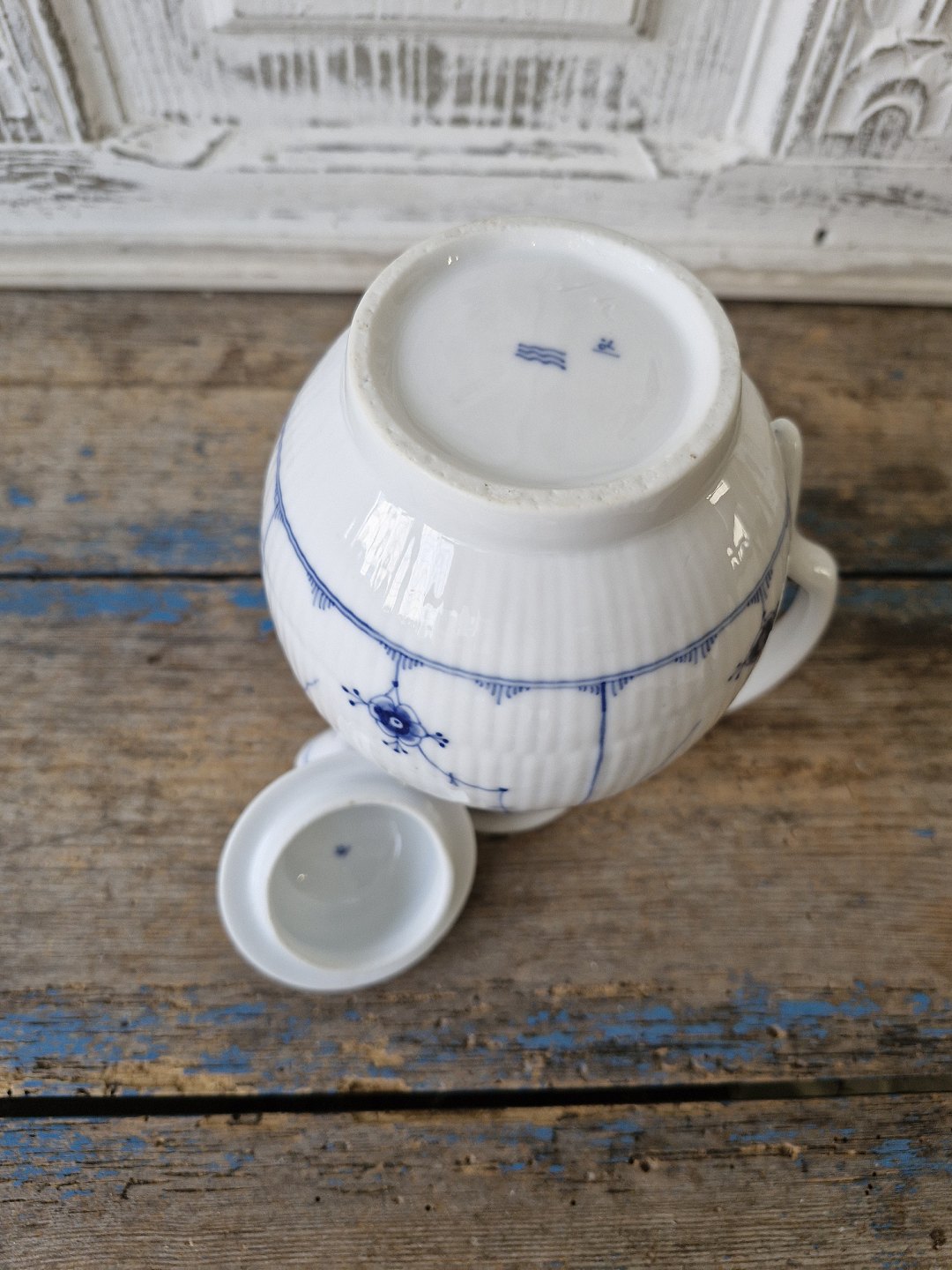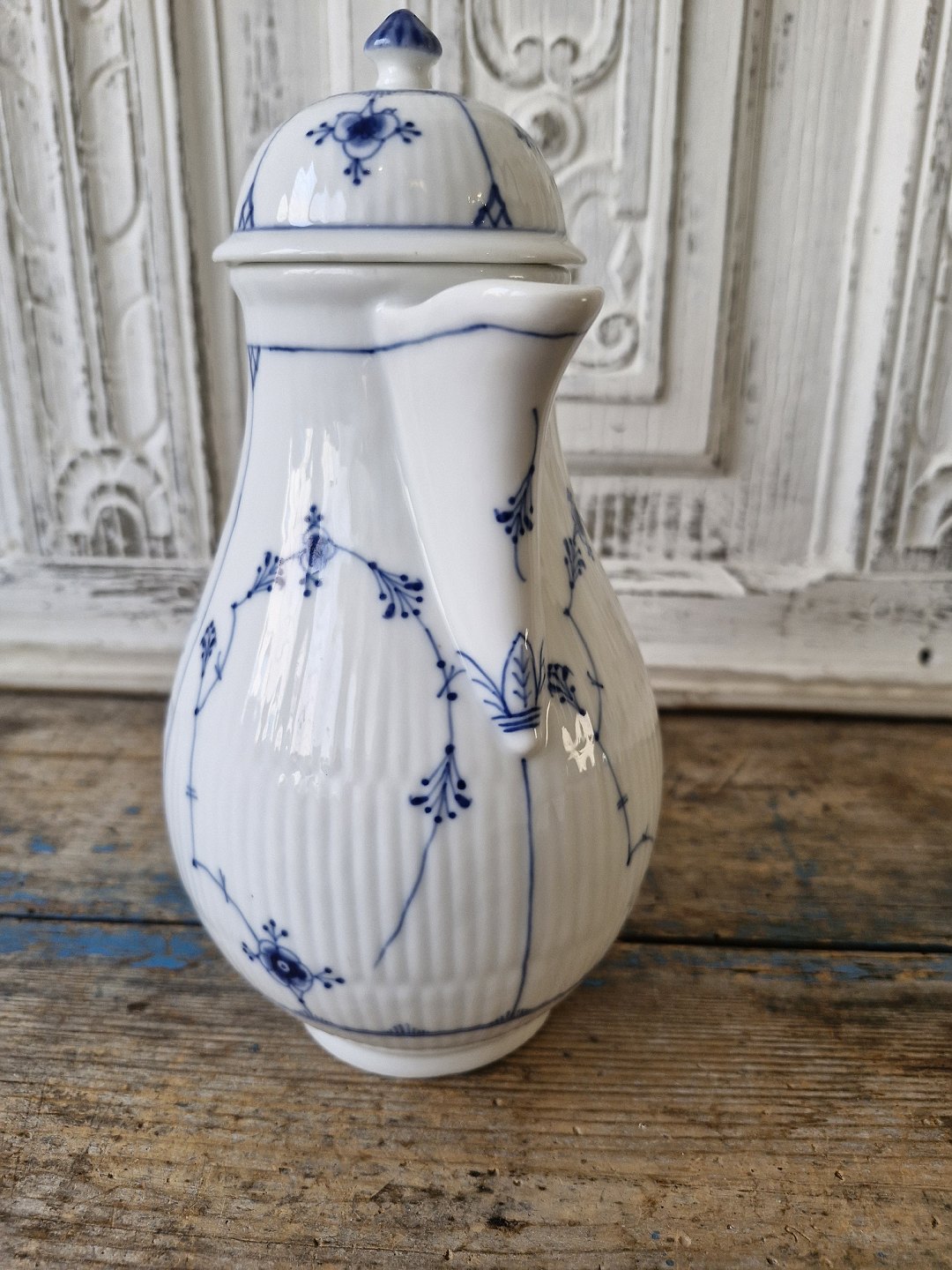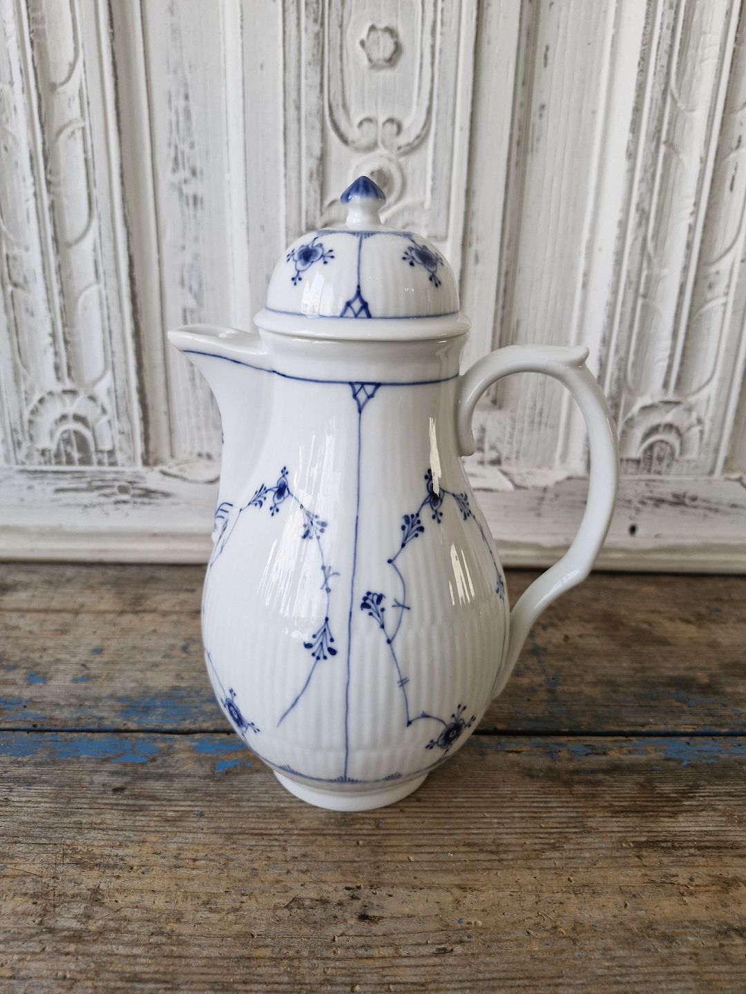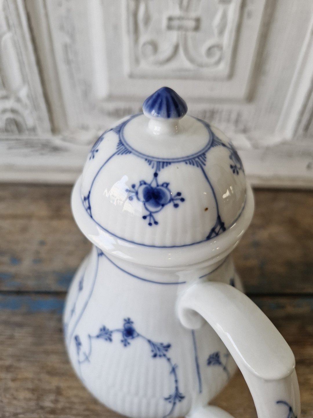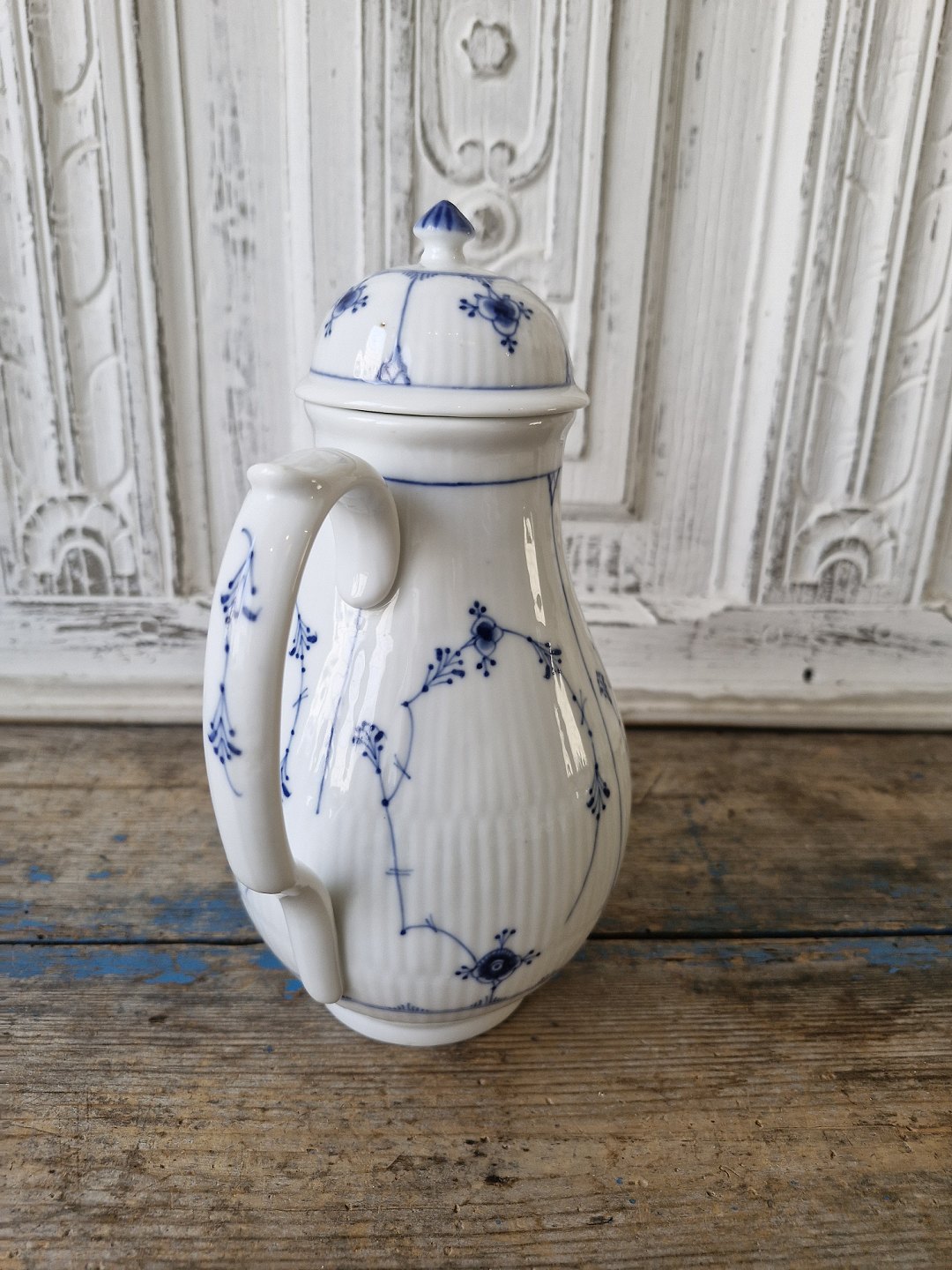 Royal Copenhagen Musselmalet riflet sjælden kaffekande 1850-98