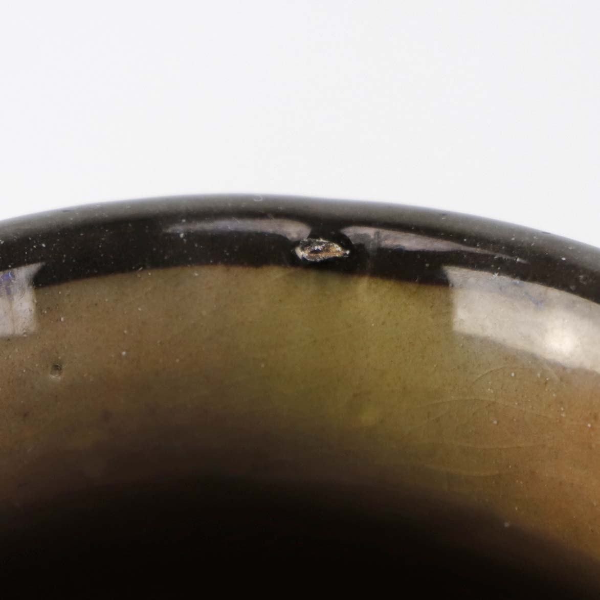 Fremstår med et mindre nøk i glasuren ved topkanten samt mindre krakkeleringer i glasuren.