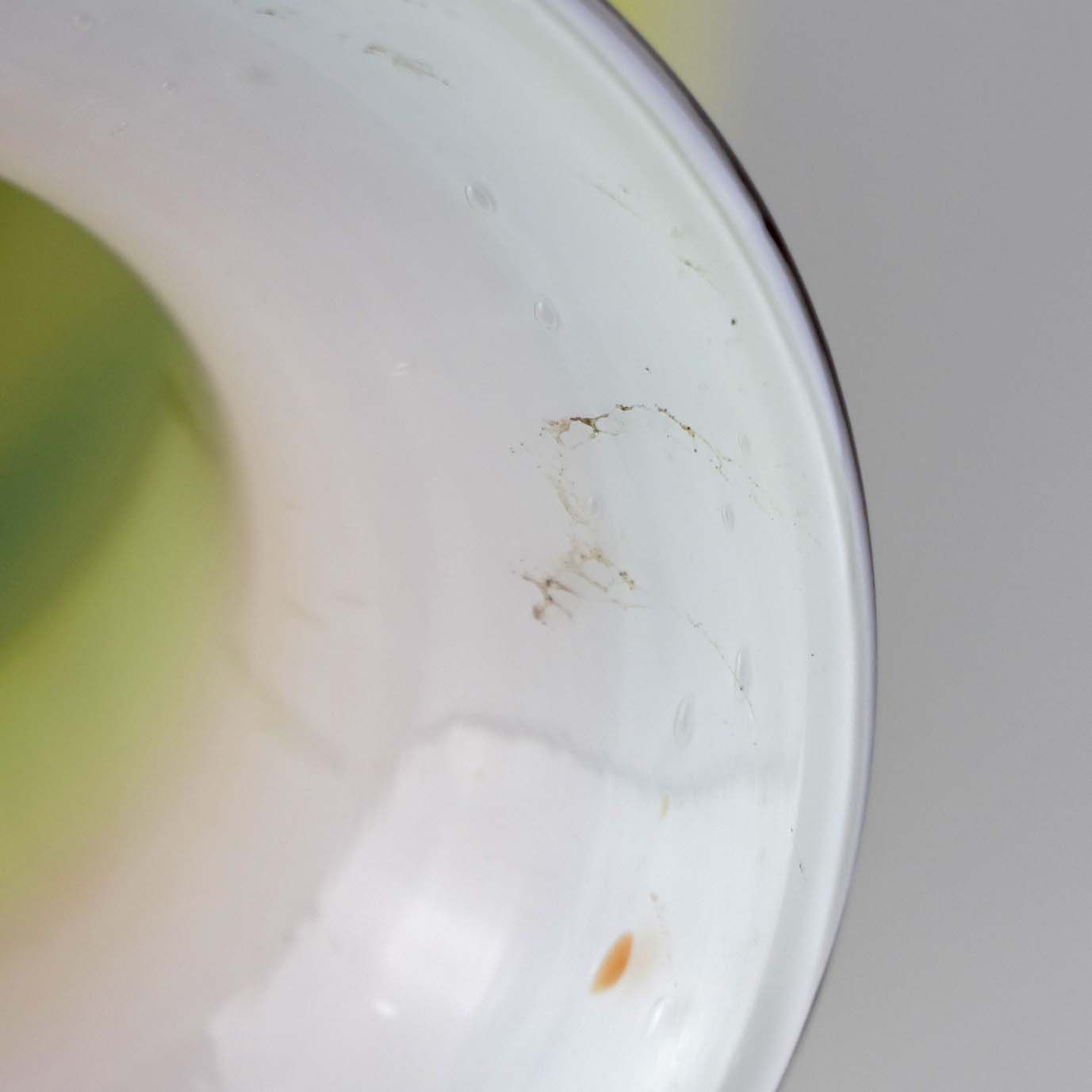 Fremstår med mindre urenheder i glasset ved topkanten og brugsspor under bunden.