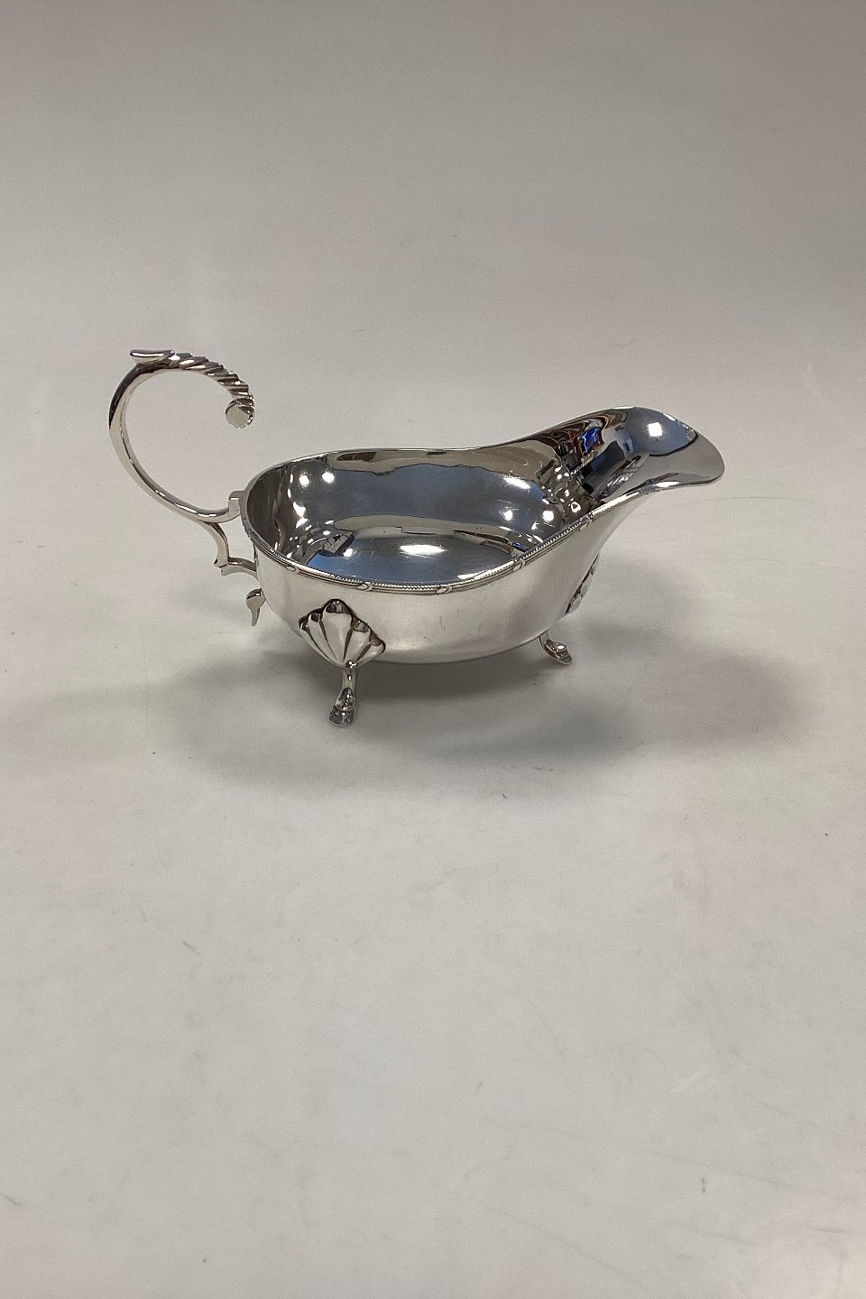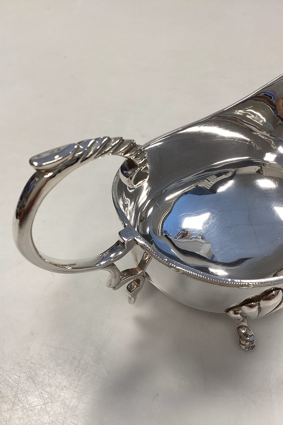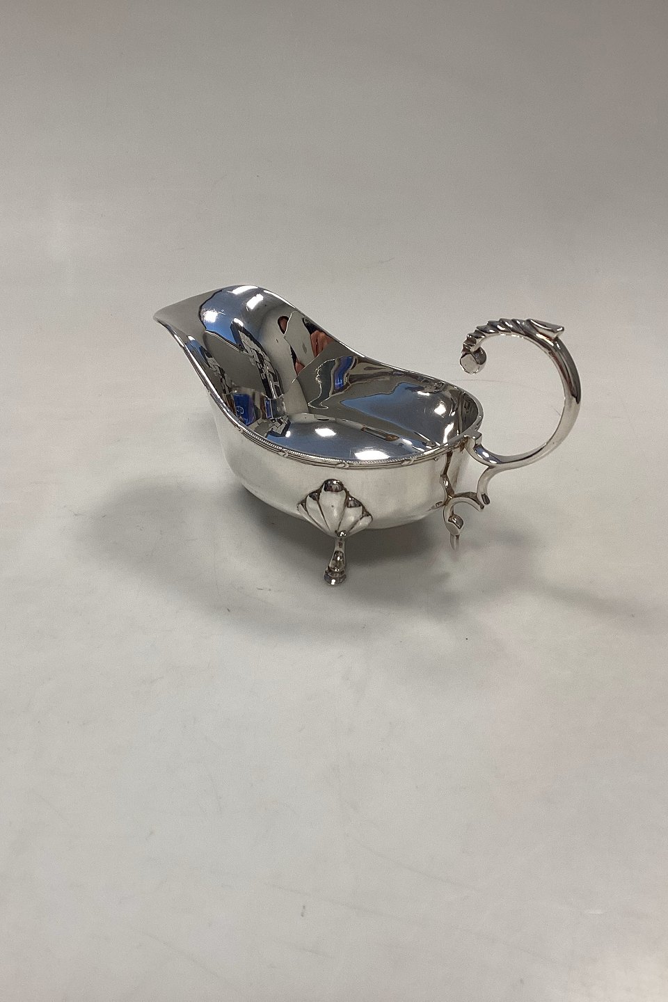 Gravy pot. Silver plated. Three-legged with decorations. Fabricator unknown. Measures 19.5 cm / 7.68 inch