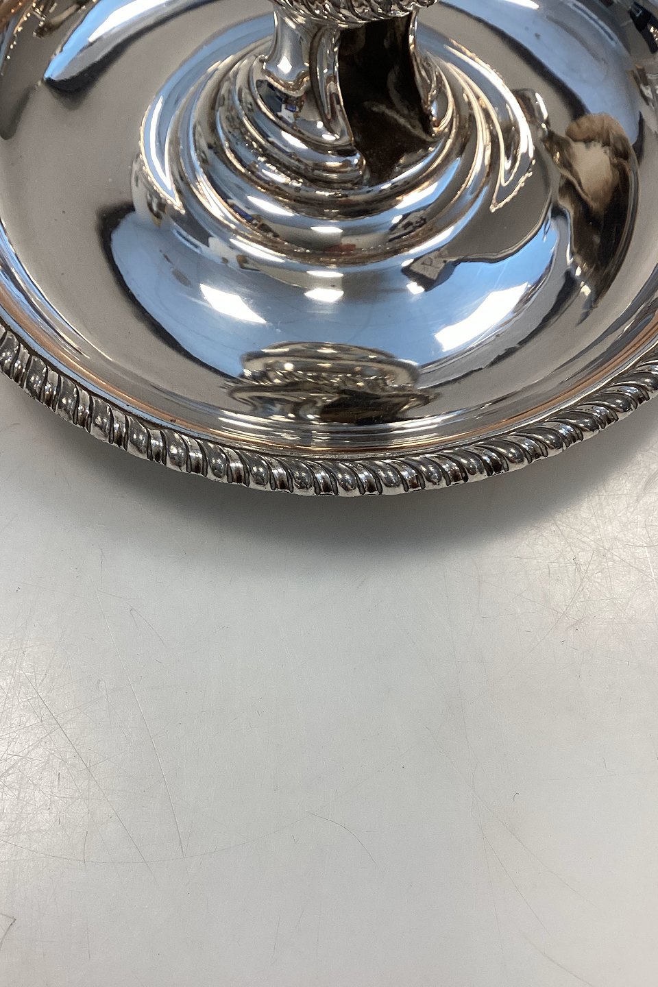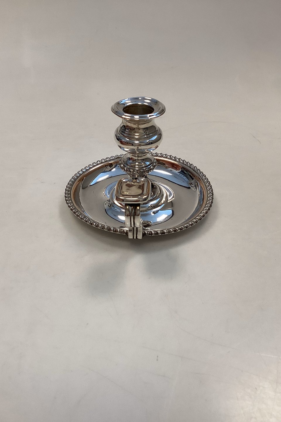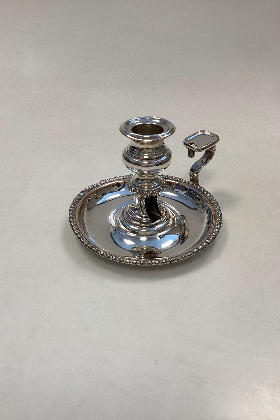 Lysestage i sølvplet, ukendt fabrikat. Tydelig tegn på slid i bunden, men ellers i god stand