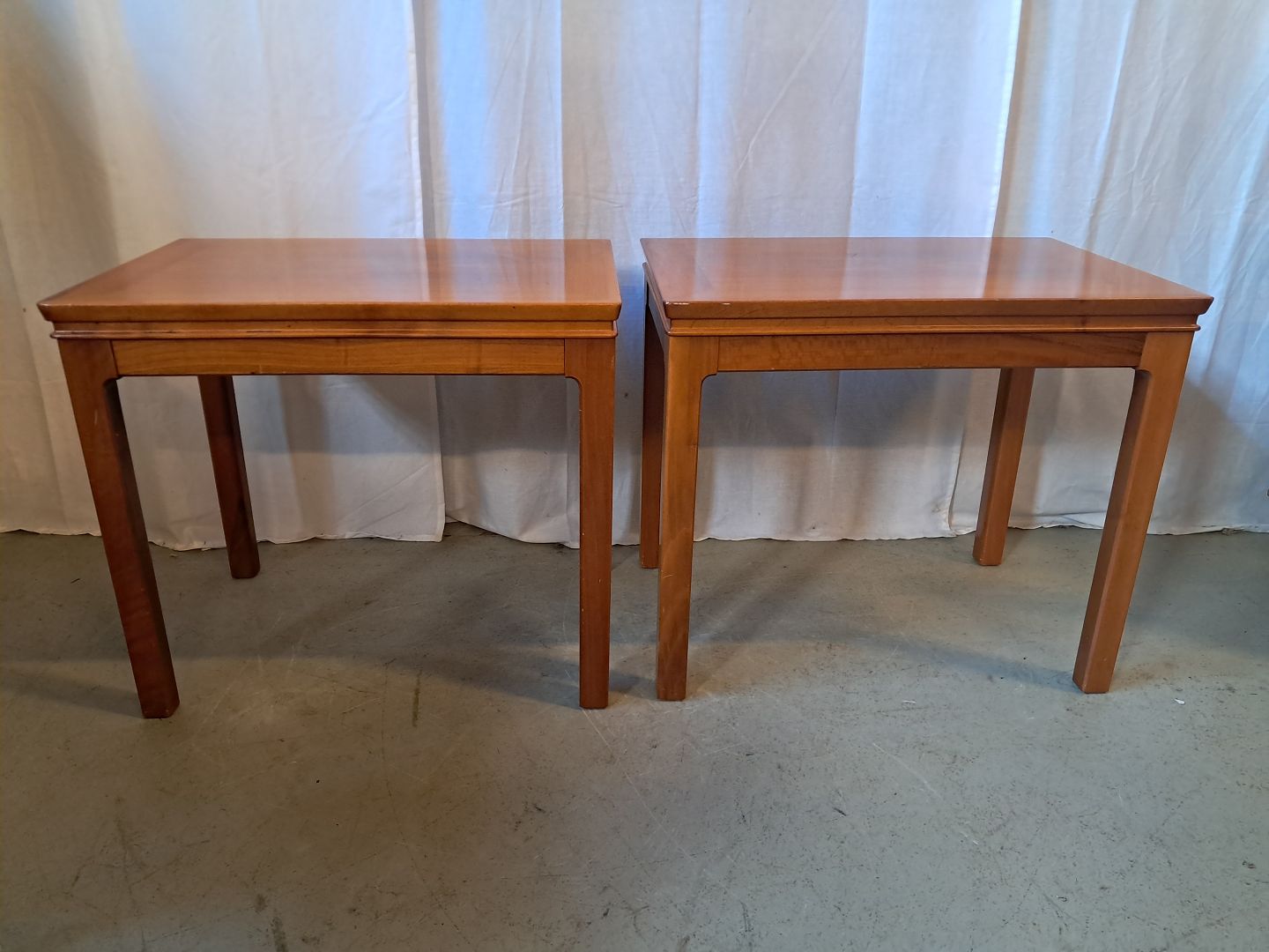 2 Lampeborde i fineret mahogni, fra 1990erne.