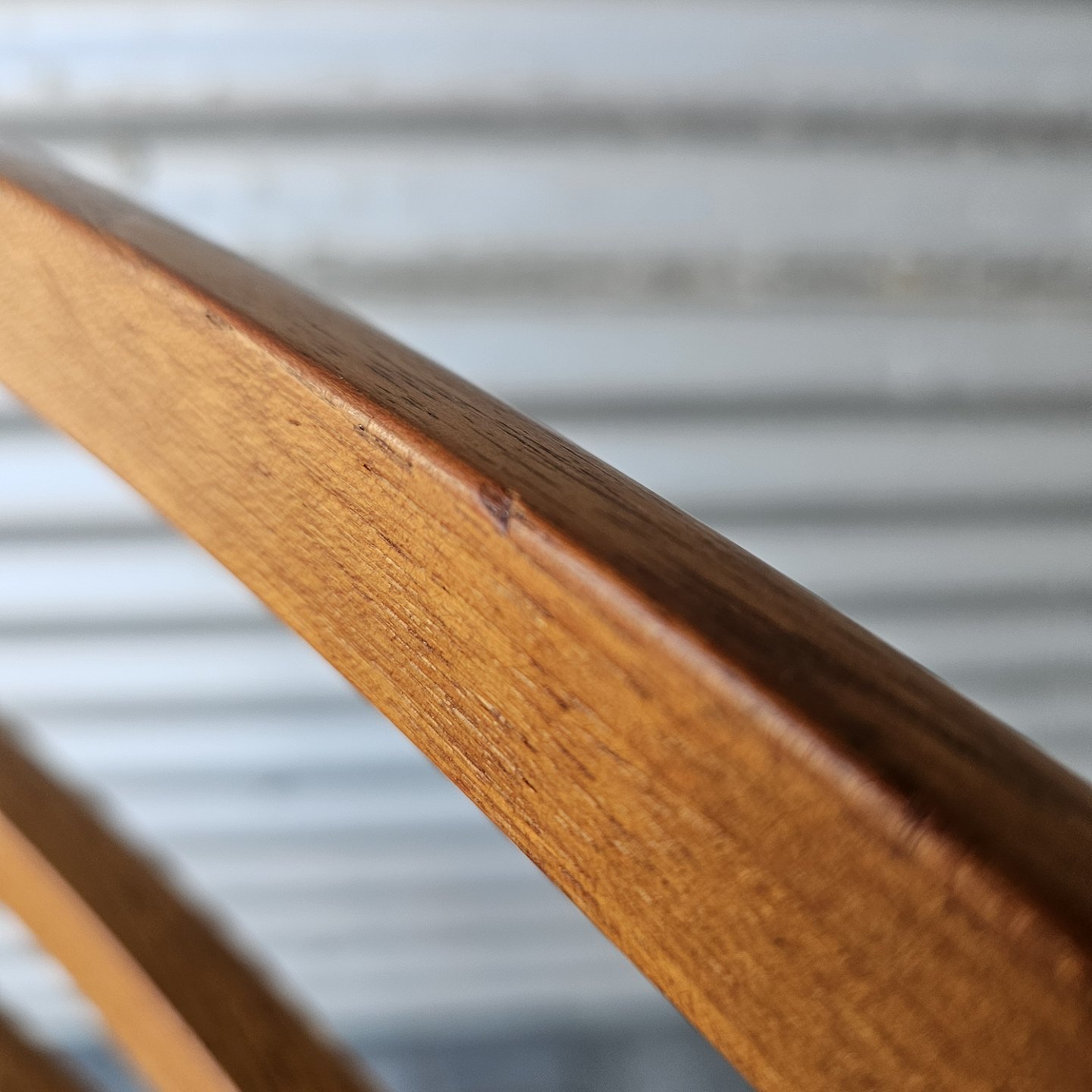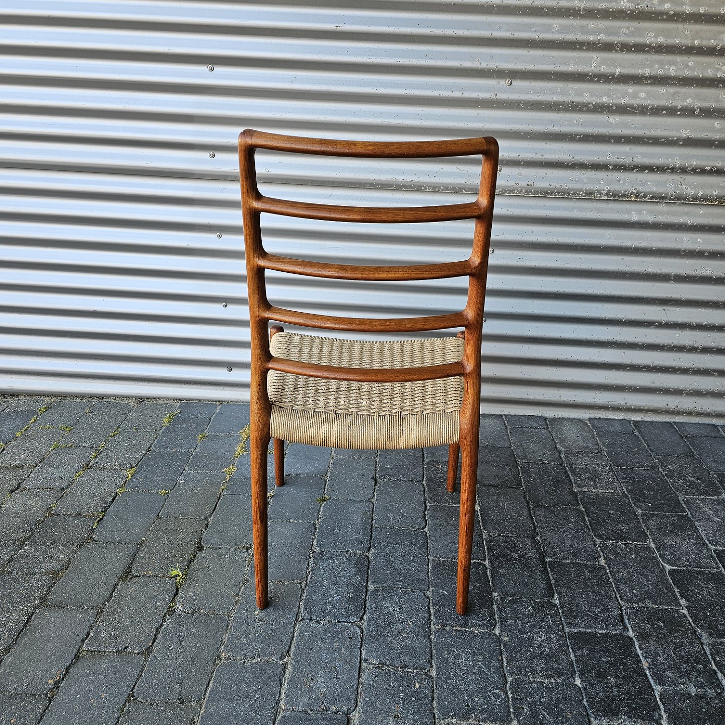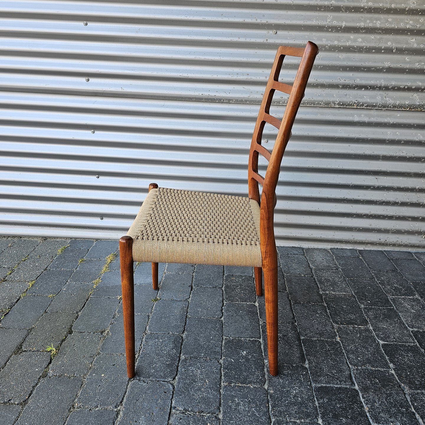 Sæt med seks styk spisebordsstole model 82 i teaktræ med ny flettede sæder, og nyrenoverede