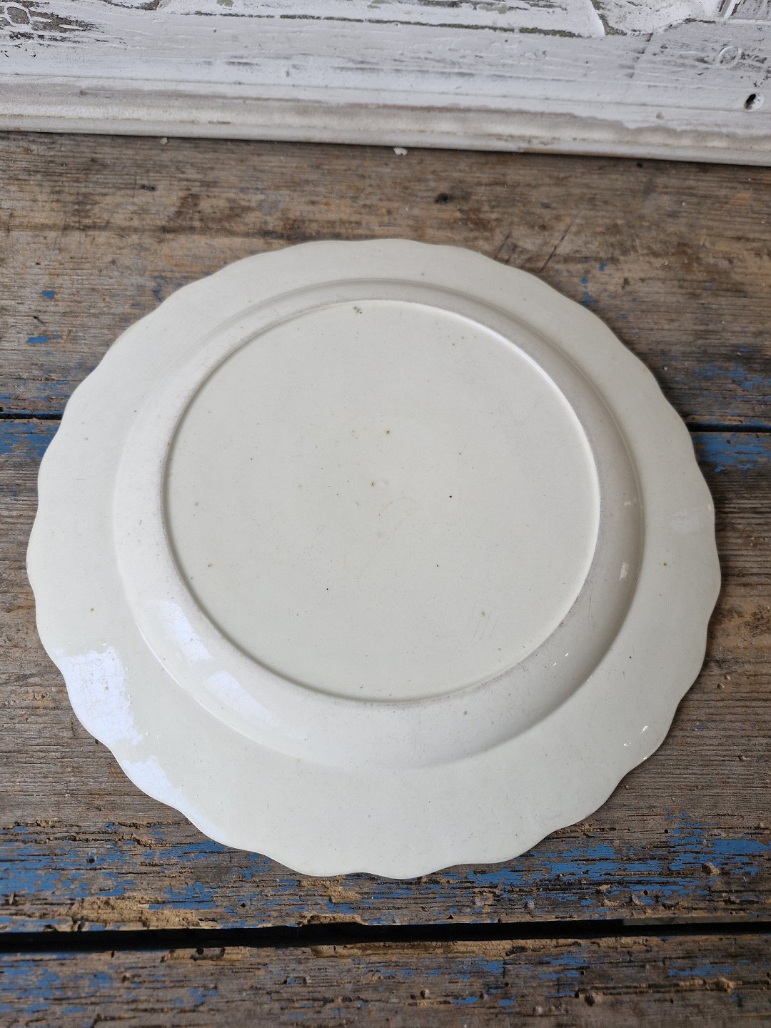 Engelsk Creamware tallerken dekoreret med fjerkant i relief 24,5 cm.