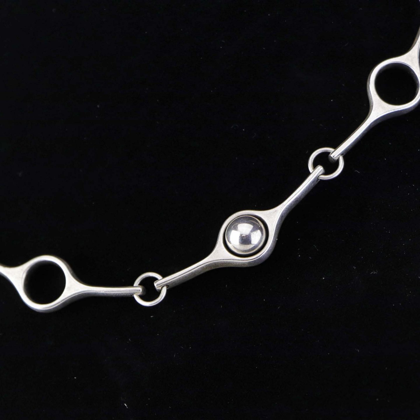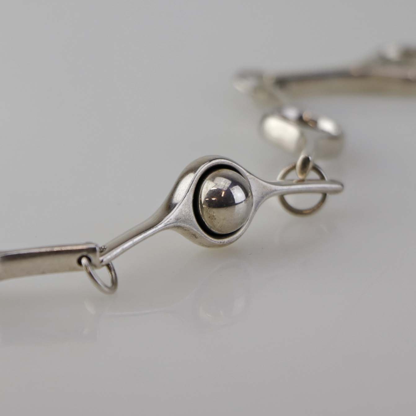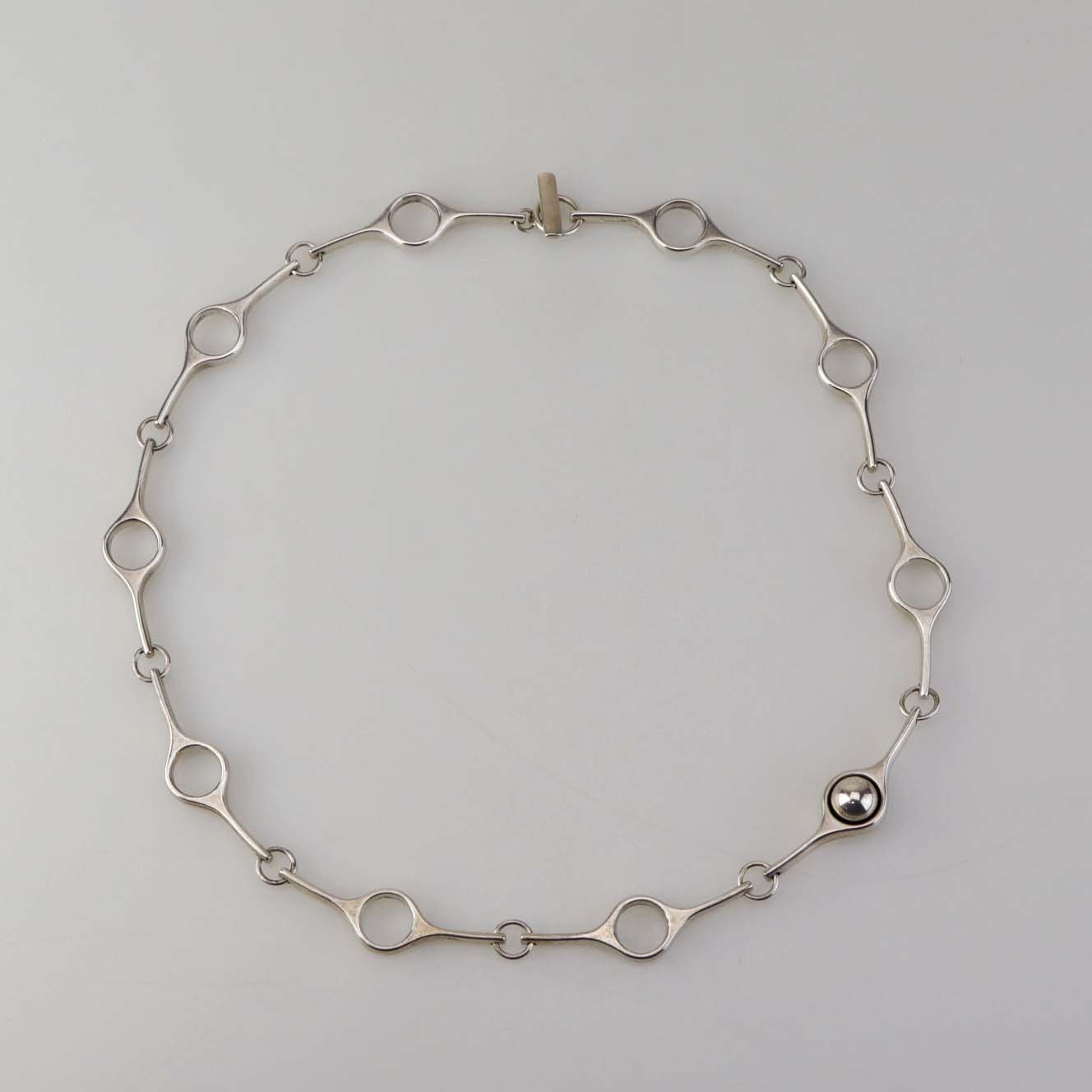 Halskæde i sterling sølv med sammensatte ellipseformede lænker og dekoration af en sølvkugle. Model Sphere.