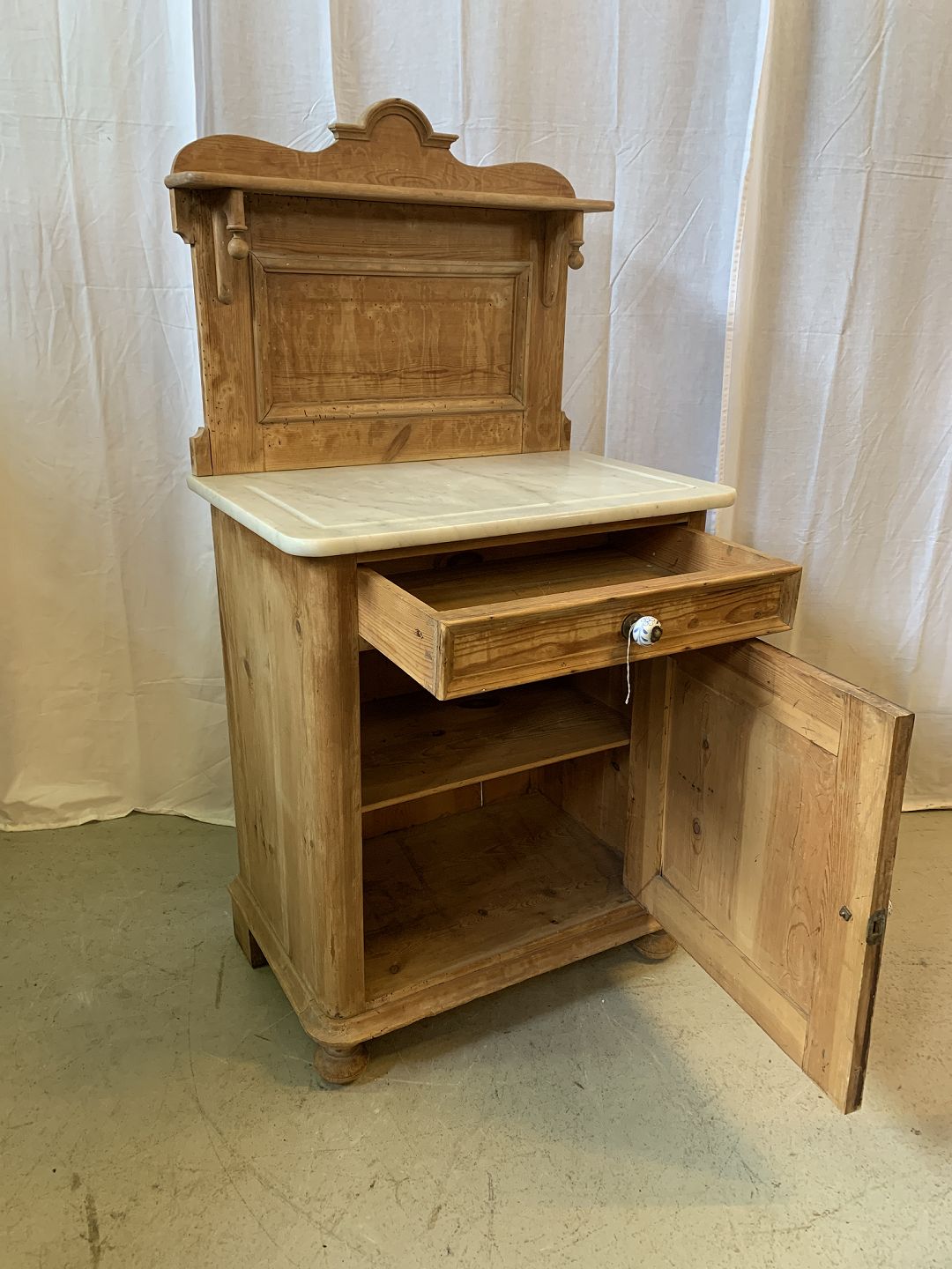 Servante i massivt fyrretræ med marmorplade, fra 1910erne.